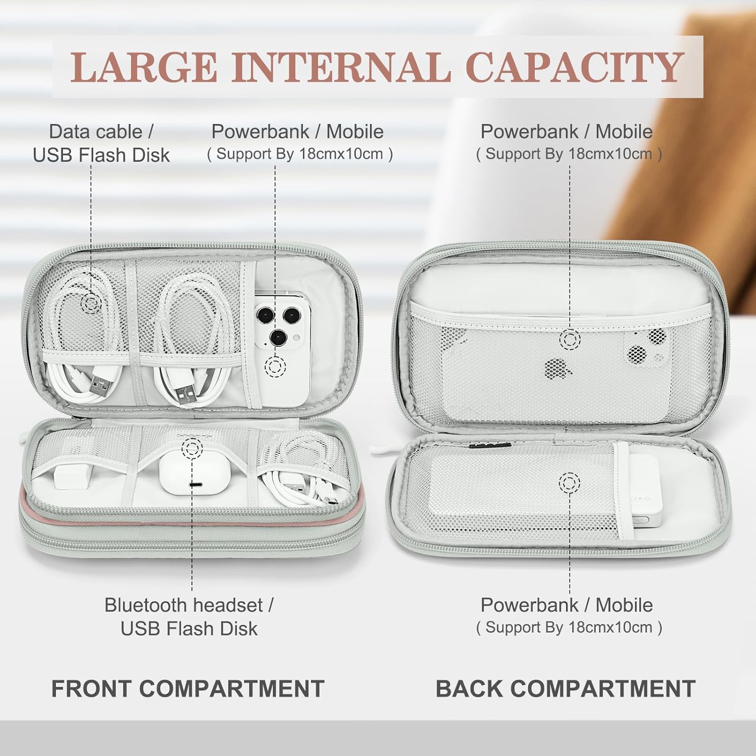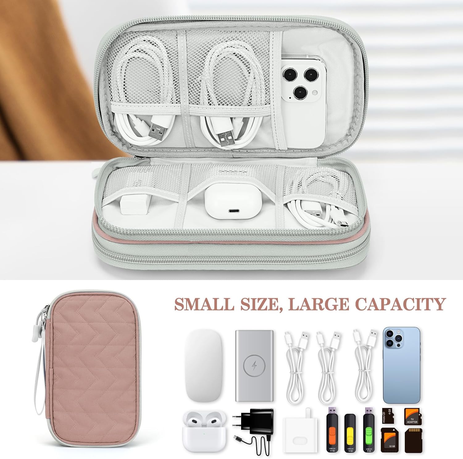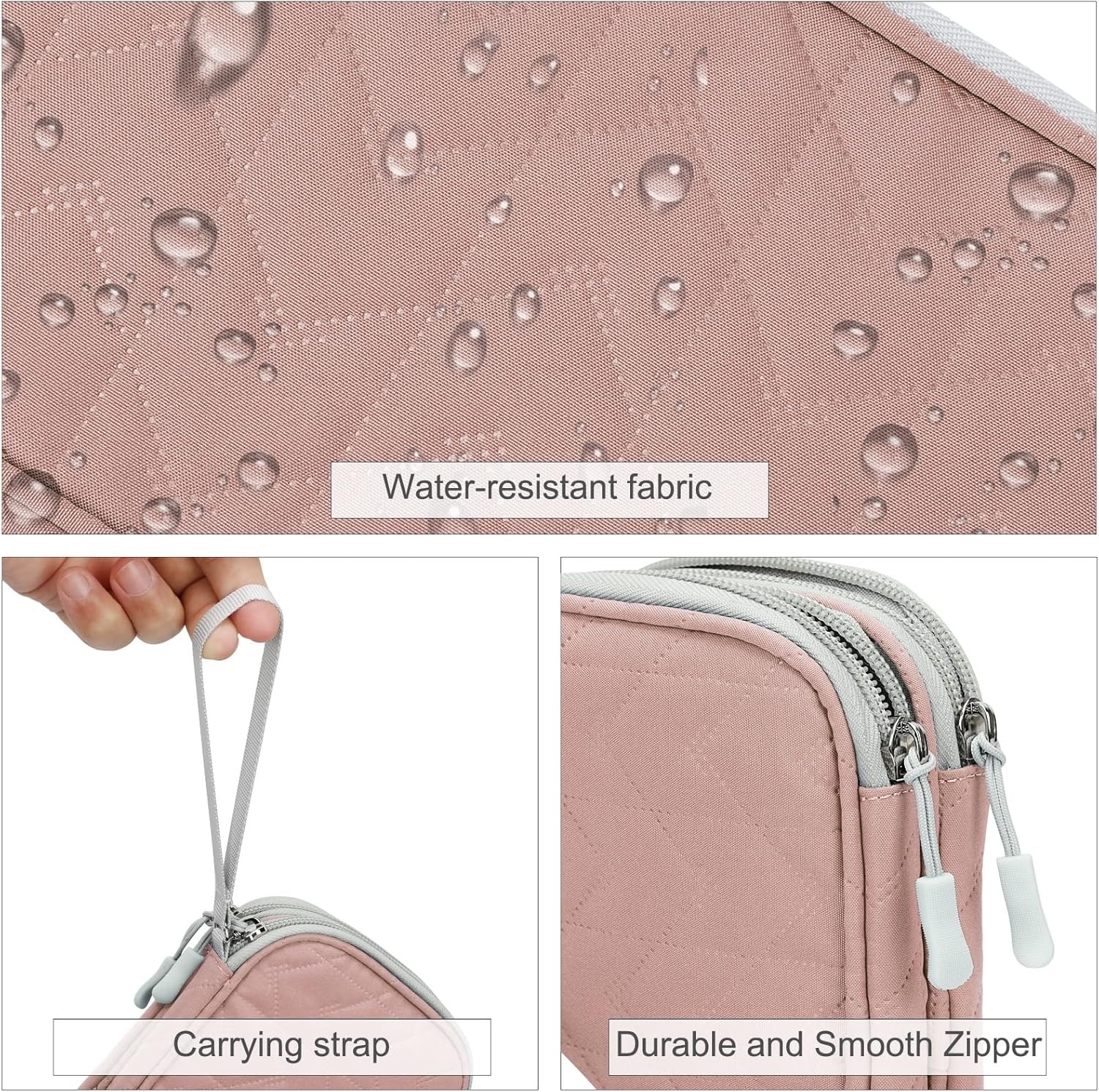 - Double Layers Design: The electronics storage bag has 2 layers interior compartment with enough space to take in your cords, cables, USB drive, cellphone, charger, mouse, flash drive, and other accessories.