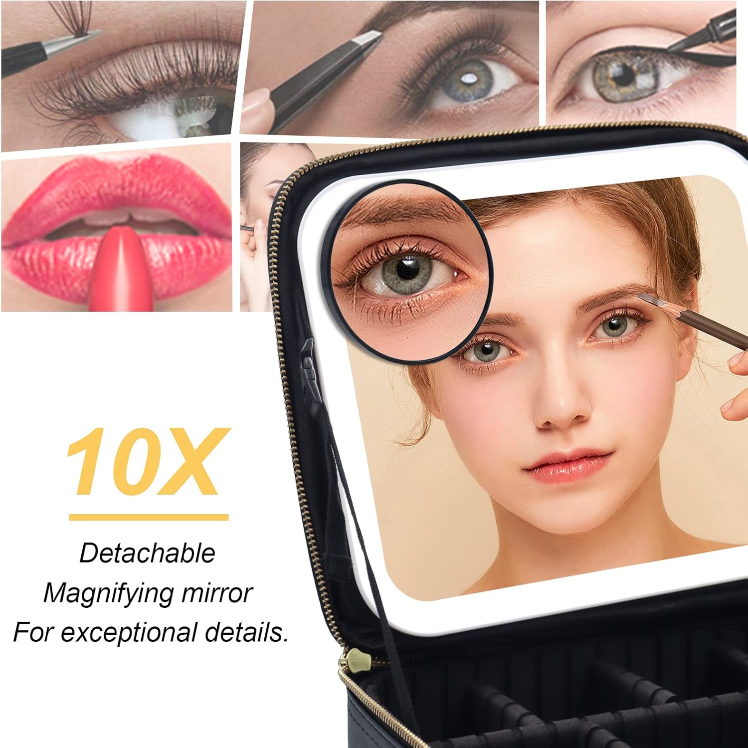 - 【10X Magnifying Mirror As a Gift】The detachable 3.5 inch 10X magnifying mirror comes with our makeup organizer bag which works excellent for applying eyeliner or mascara, lining and defining the eyebrows, putting on contact lenses, and other beauty and skincare needs. You can see the face for every detail so that you can enjoy meticulous makeup. A must have for travel or business trips.