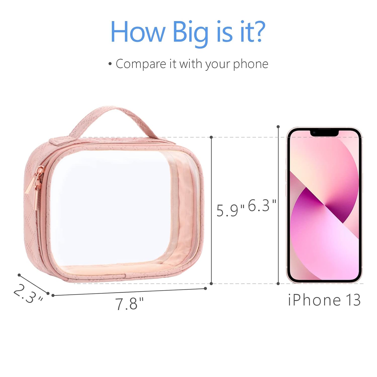 - TSA Approved: This 7.8 x 2.3 x 5.9 inch clear makeup bag follows the 3-1-1 Liquid Rule of airlines. When placing travel-sized containers that are 3.4 ounces or 100 milliliters in this quart-sized bag, you can quickly pass the airport security screening