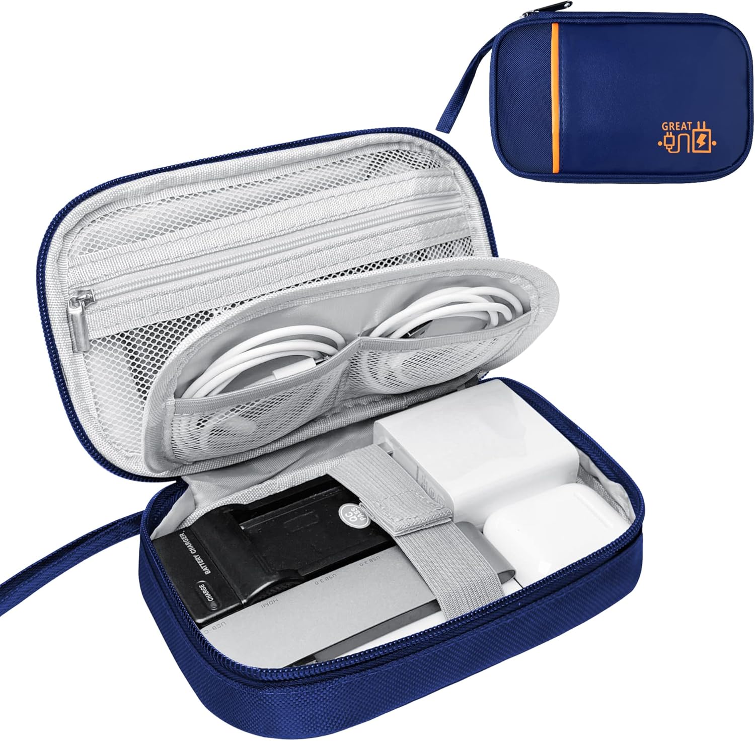 Travel Cable Organizer Bag Pouch Electronic Accessories Carry Case Portable Waterproof All-in-One Storage Bag for Cable,Charger, Phone, Hard Drive,SD Card-Navy Blue