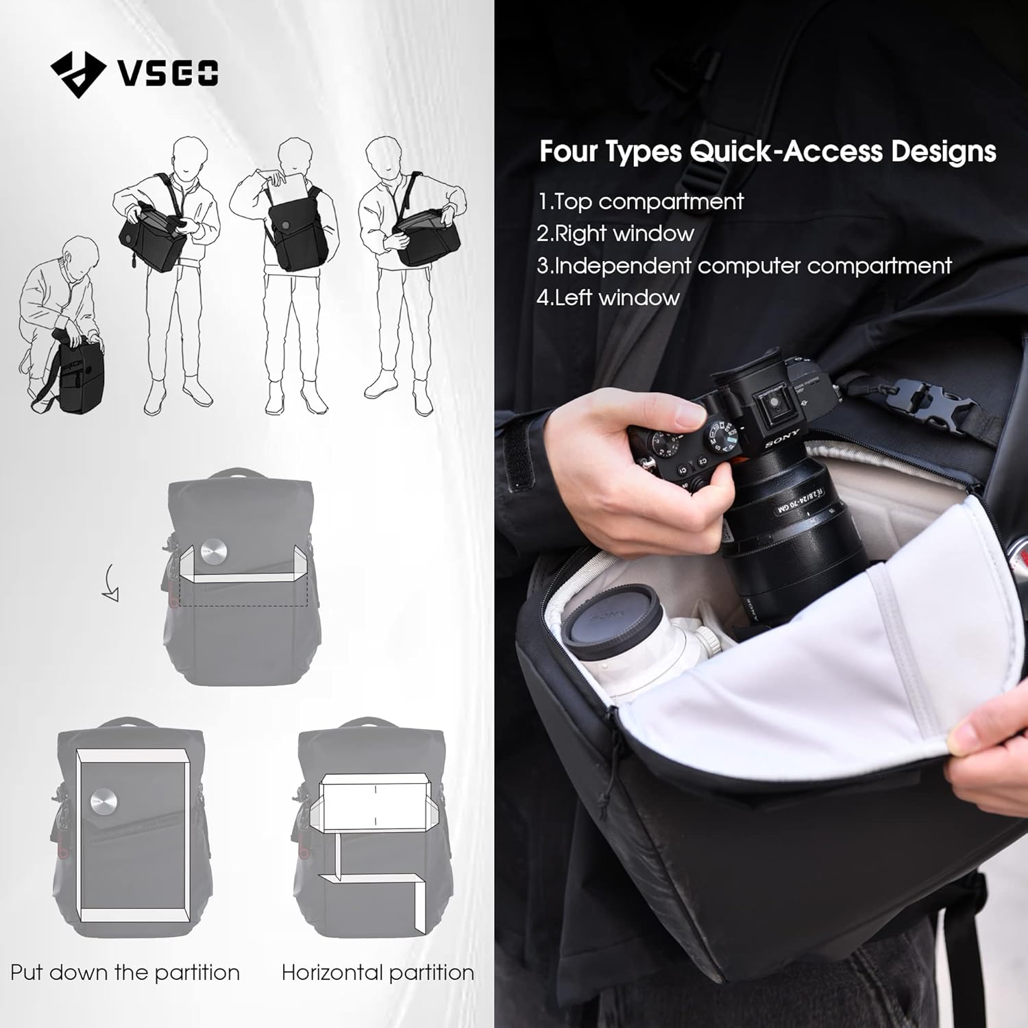 - 【All-Day Comfort You Can Count On】 Long shoots and tough hikes demand serious comfort. The VSGO Black Snipe delivers with a breathable EVA back panel and 3D ventilation channels that keep air flowing and pressure off your back. The ergonomic design means less fatigue and more freedom to focus on capturing the moments that matter.