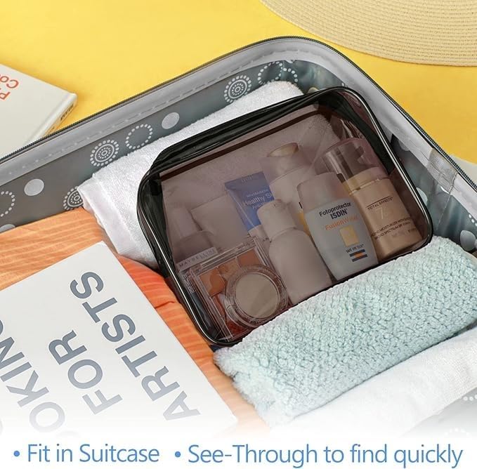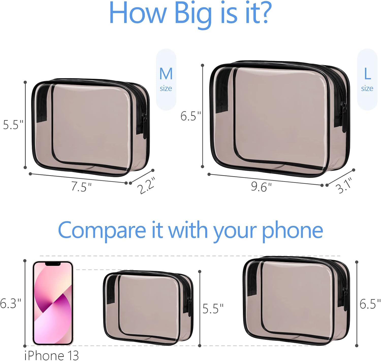 - High-Quality, Durable: The clear makeup bags keep the shape with reinforced boning. Smooth metal zipper for longevity, ensuring a secure seal that complies with TSA regulations for sealed bags. Wide opening for easy access. A net weight of only 0.7 lbs per bag, light and feelless
