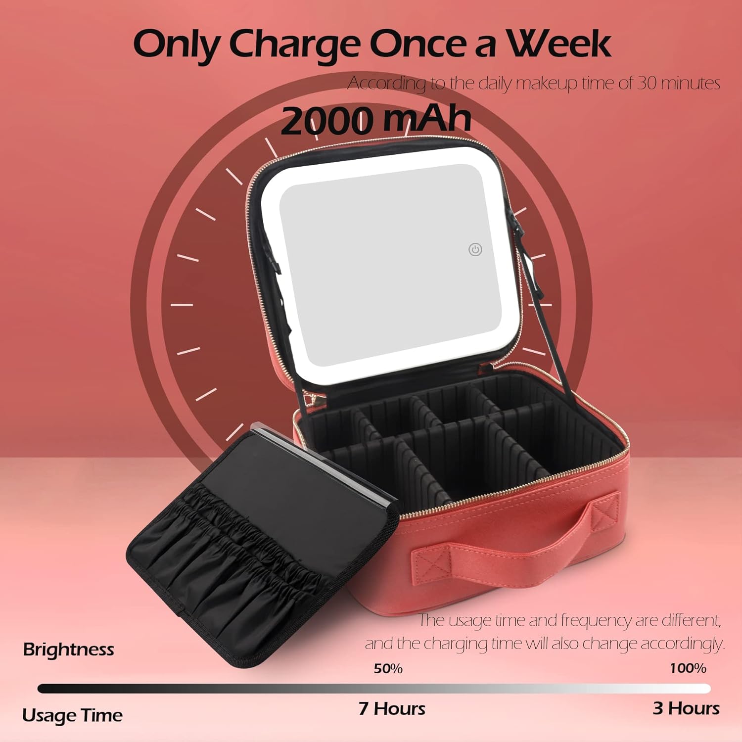 MOMIRA Travel Cosmetic Train Case with Lighted Mirror 3 Color Scenarios Cosmetic Bag Organizer with Adjustable Dividers Makeup Storage for Women, Makeup Accessories & Tools Case Red