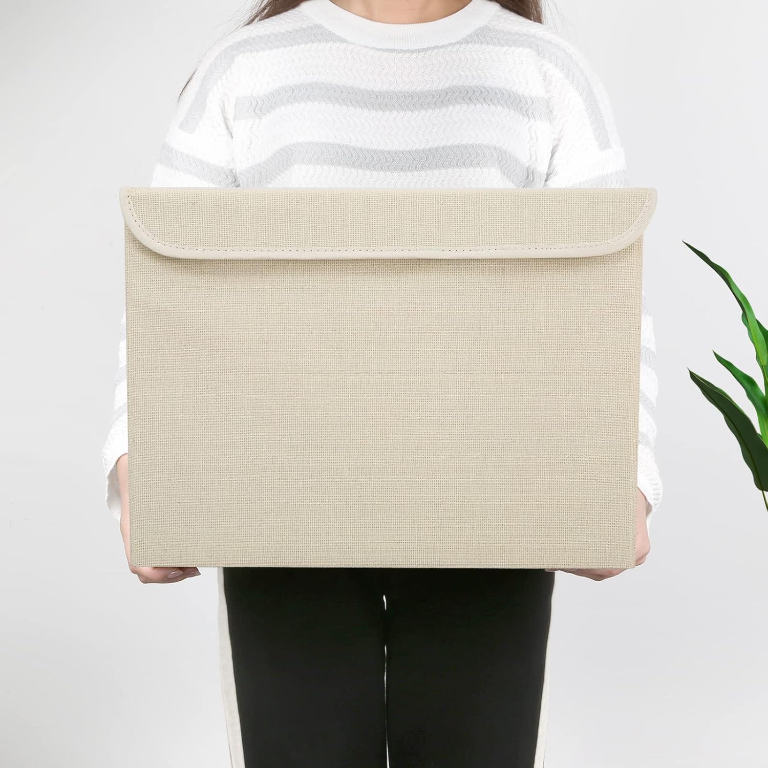 - 【Premium Quality】 -These fabric storage bins with lids are made of durable and breathable linen fabric with the high quality cardboard on the sides and bottom. The fabric is eco-friendly and durable, with no odor. The inner 2.2mm thick cardboard maintains fabric storage box shape and structural integrity. Both handles are sewn through cardboard to make this decorative storage boxes rigid enough to hold a heavy load.
