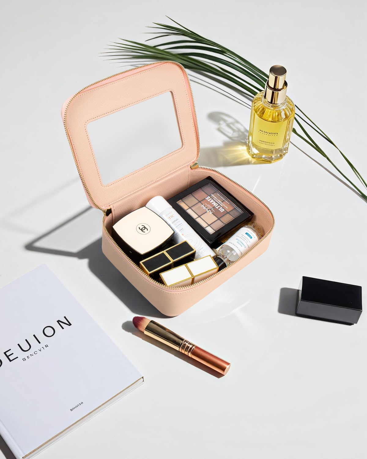 - PREMIUM PU SAFFIANO LEATHER:These travel toiletry bags are made of PU material,durable, and waterproof.Unlike other flimsy and collapsible pvc bags, Together with the beautiful stitches and compact leather zippers, this make up bag is durable for long-lasting use.