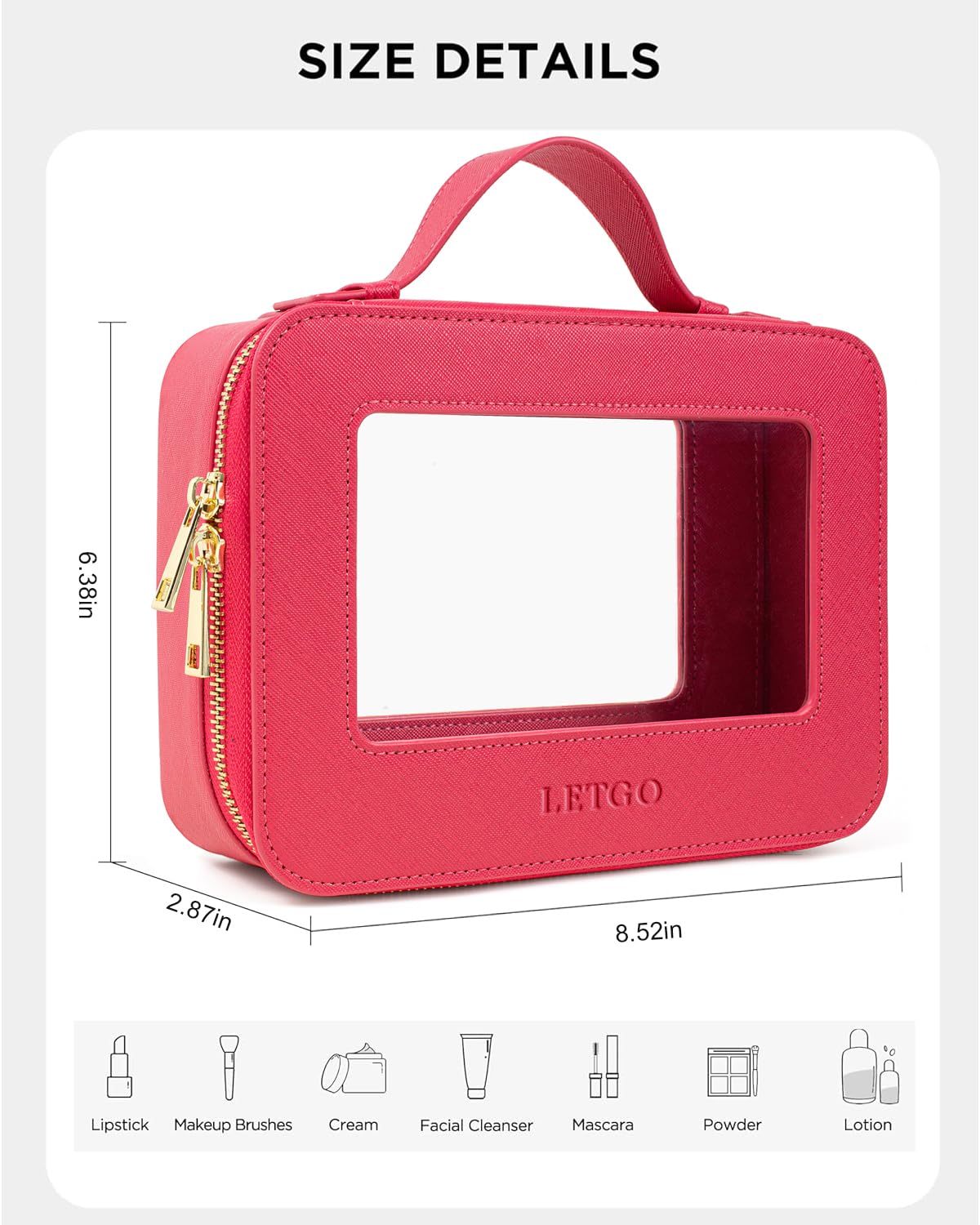 - ✈️TRAVEL TOILETRY CLEAR MAKEUP BAG: Large Size Measuring 9.84'' x 7.67'' x 3.14''(25cm x19.5cm x 8cm), Medium Size 9.84'' x 6.1'' x 3.14''(25cm x15.5cm x 8cm), our clear makeup bag is elegant ,and stylish, this makeup travel organizer was designed in a minimalist boxy shape and Crafted in beautiful PU leather and finished with polished hardware, the trendy makeup bag is easy to carrying in your handbag or carry-on.