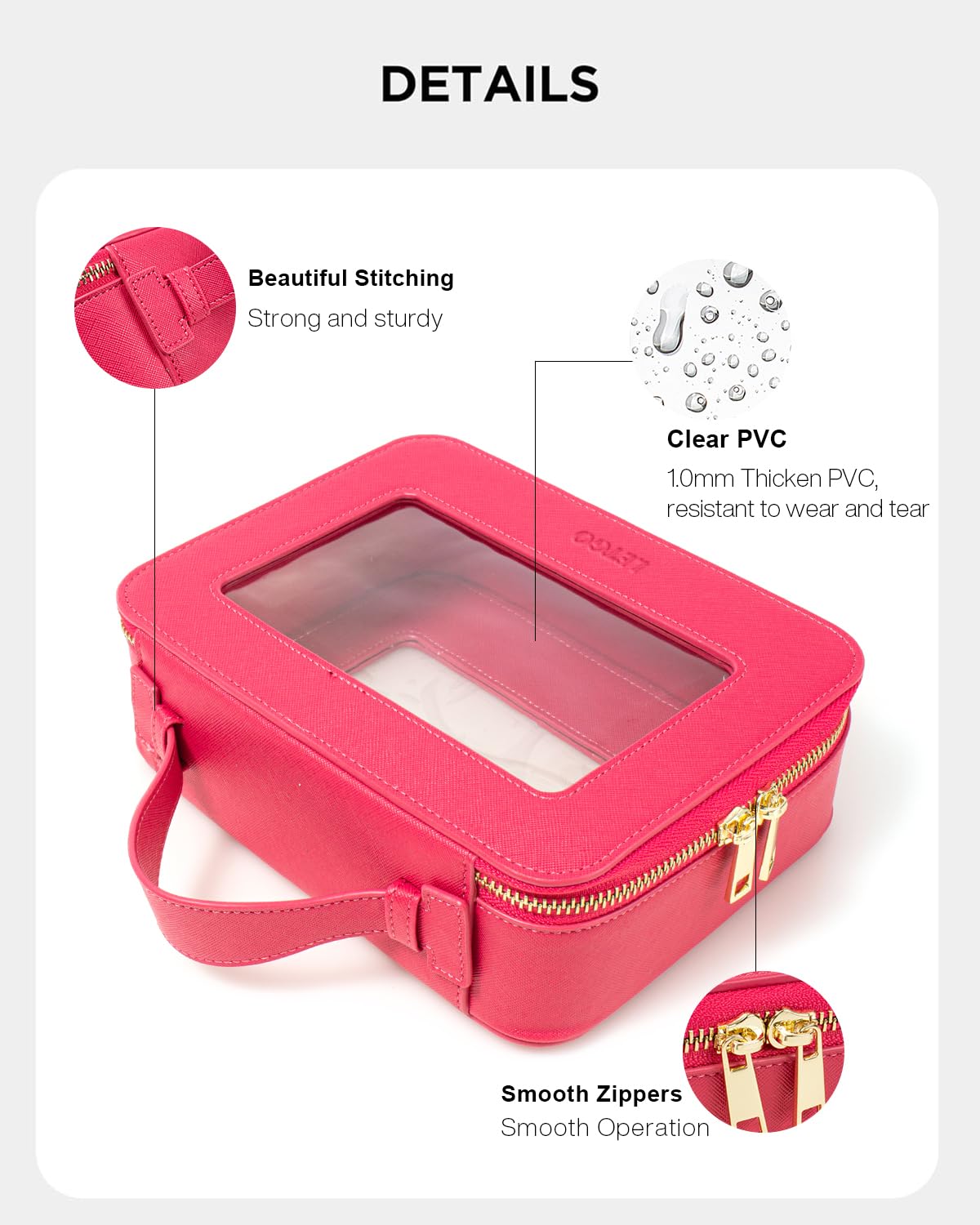 - ✈️WATERPROOF & MULTI-FUNCTION:Our cosmetic organizer is roomy to store your make-up foundation, brushes, skincare routine or other little items like art pencils, cables and chargers. Simply wipe all surfaces with a damp cloth or wet tissue to keep the pouch bag clean.