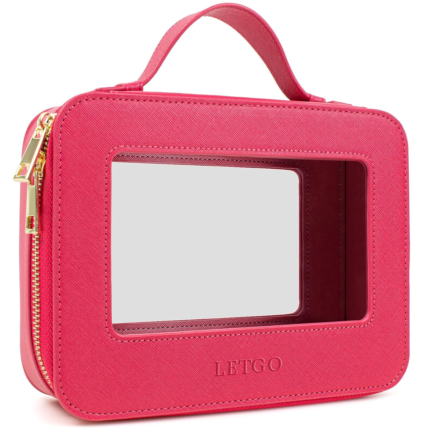 LETGO Clear Makeup Bags, TSA Approved Toiletry Bag with Zipper, Clear Makeup Organizer Fit Carry-on Travel Essentials,Clear Cosmetic Bags for Women Men (A-Rose)