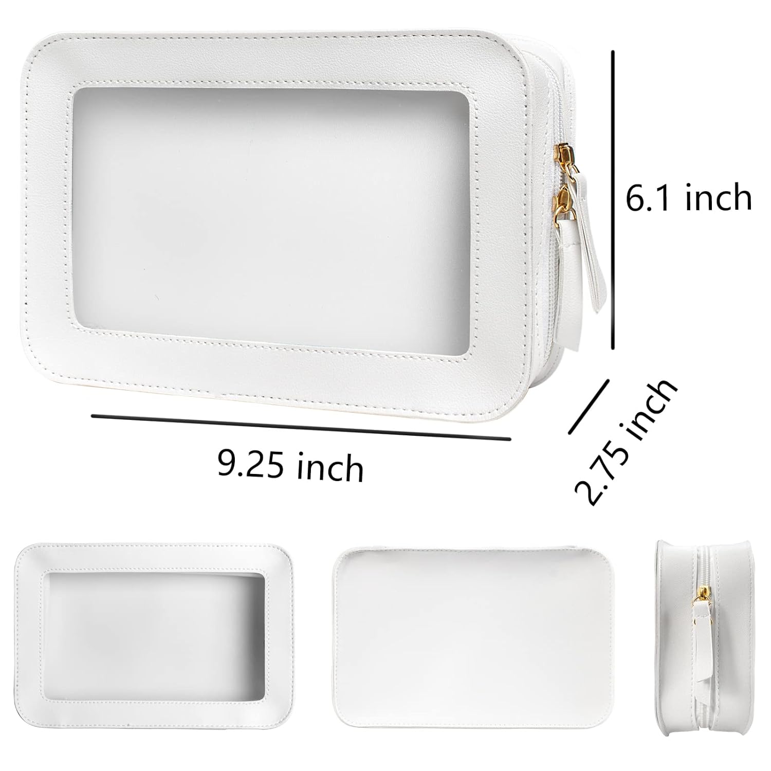 - TRAVEL TOILETRY CLEAR MAKEUP BAG: Measuring 9.25'' x 6.1'' x 2.75''(23.5cm x15.5cm x 7cm), our clear makeup bag is elegant ,and stylish, this makeup travel organizer was designed in a minimalist boxy shape and Crafted in beautiful PU leather and finished with polished hardware, the trendy makeup bag is easy to carrying in your handbag or carry-on.