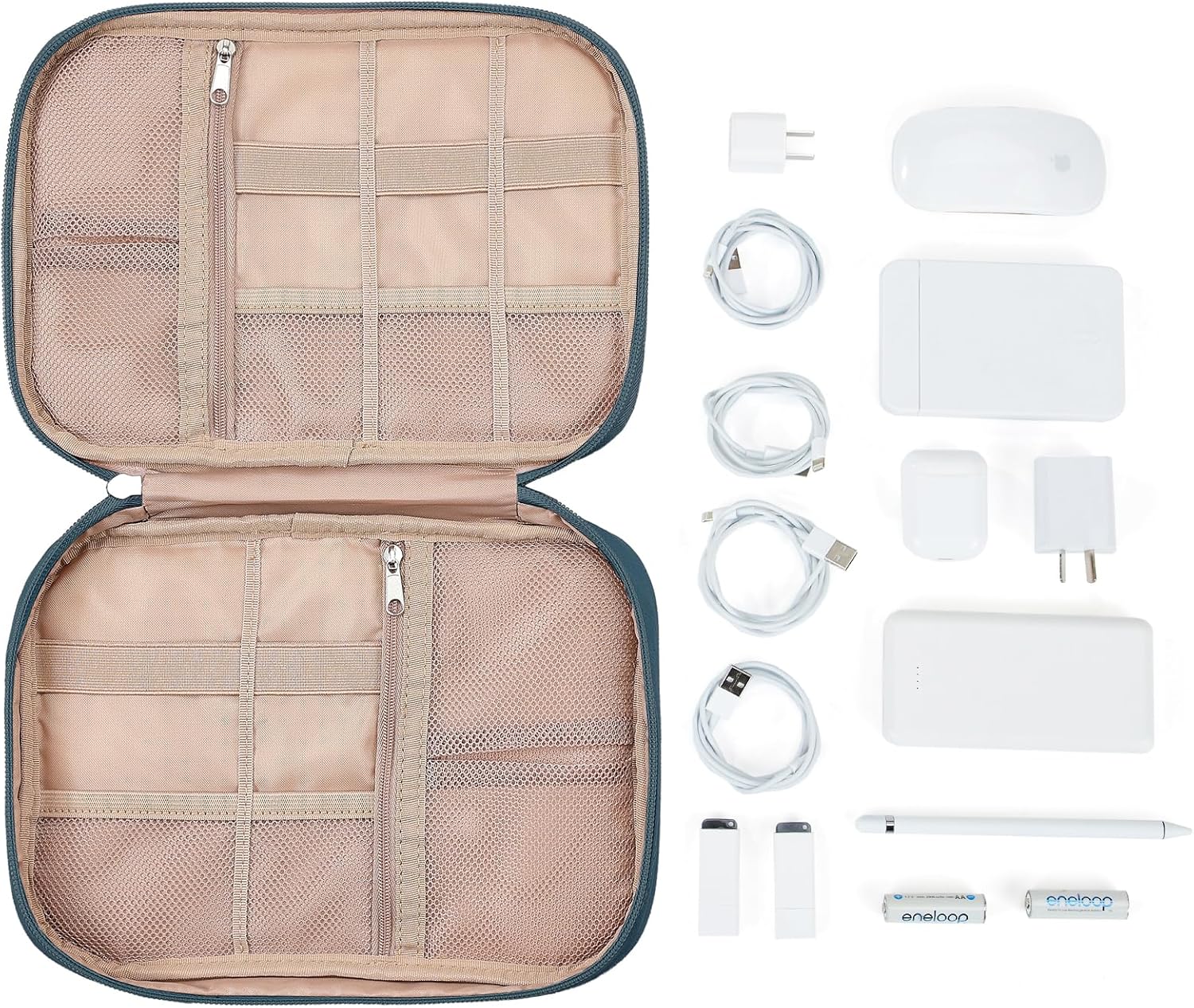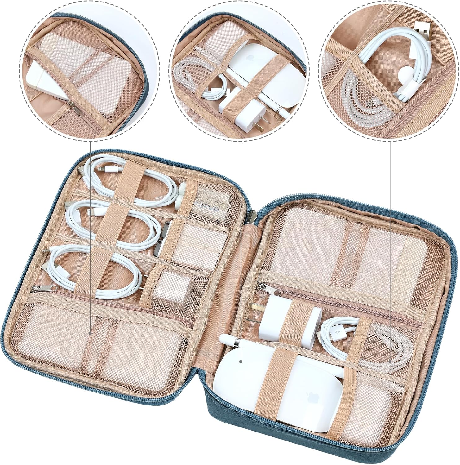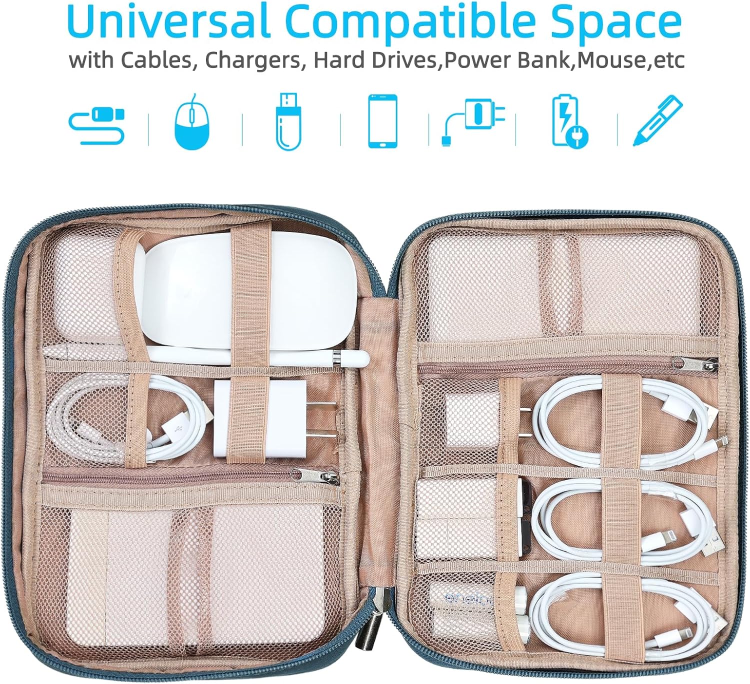 NISHEL Travel Cord Organizer Case, Tech Electronic Bag, Essentials for Charger, Cable, Phone, Hard Drive, USB, SD Card, Lake-Blue