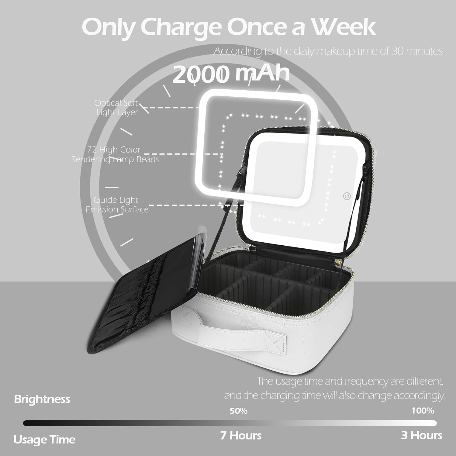 - 👍🏻【Meticulous Selection of Materials, High Standard Production】Double zippers of this lighted makeup case are controlled by high standards from chain cloth selection, sprocket arrangement, polishing, electroplating, and subsequent oil sealing and waxing processes to ensure smoother pulling. Specially customized sturdy plastic case for fixing the vanity mirror, whether it is placed in the luggage or directly on the car, the mirror surface will not break.