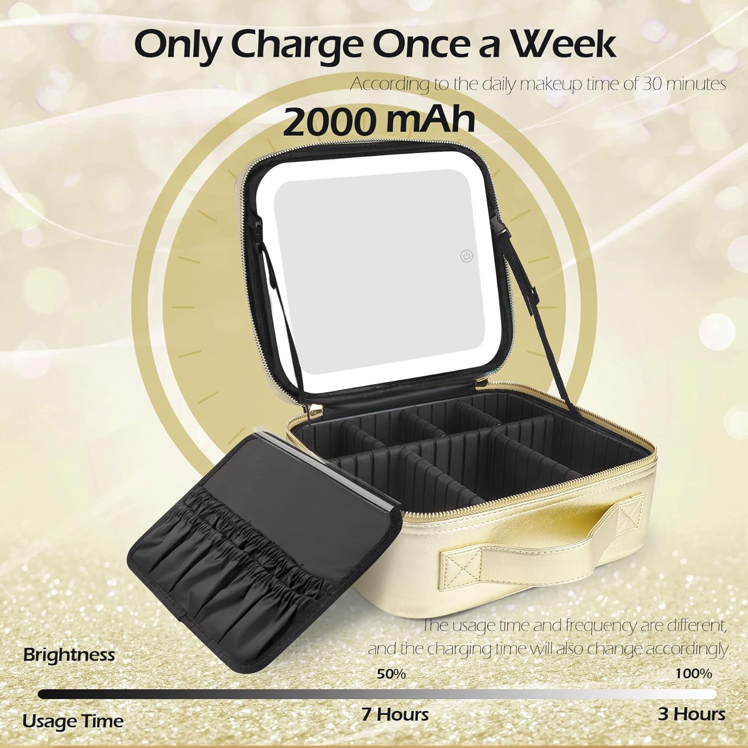 MOMIRA Makeup Bag with Mirror and Light Travel Makeup Train Case Cosmetic Bag Organizer Portable Artist Storage Bag with Adjustable Dividers Makeup Brushes Storage Organizer Golden