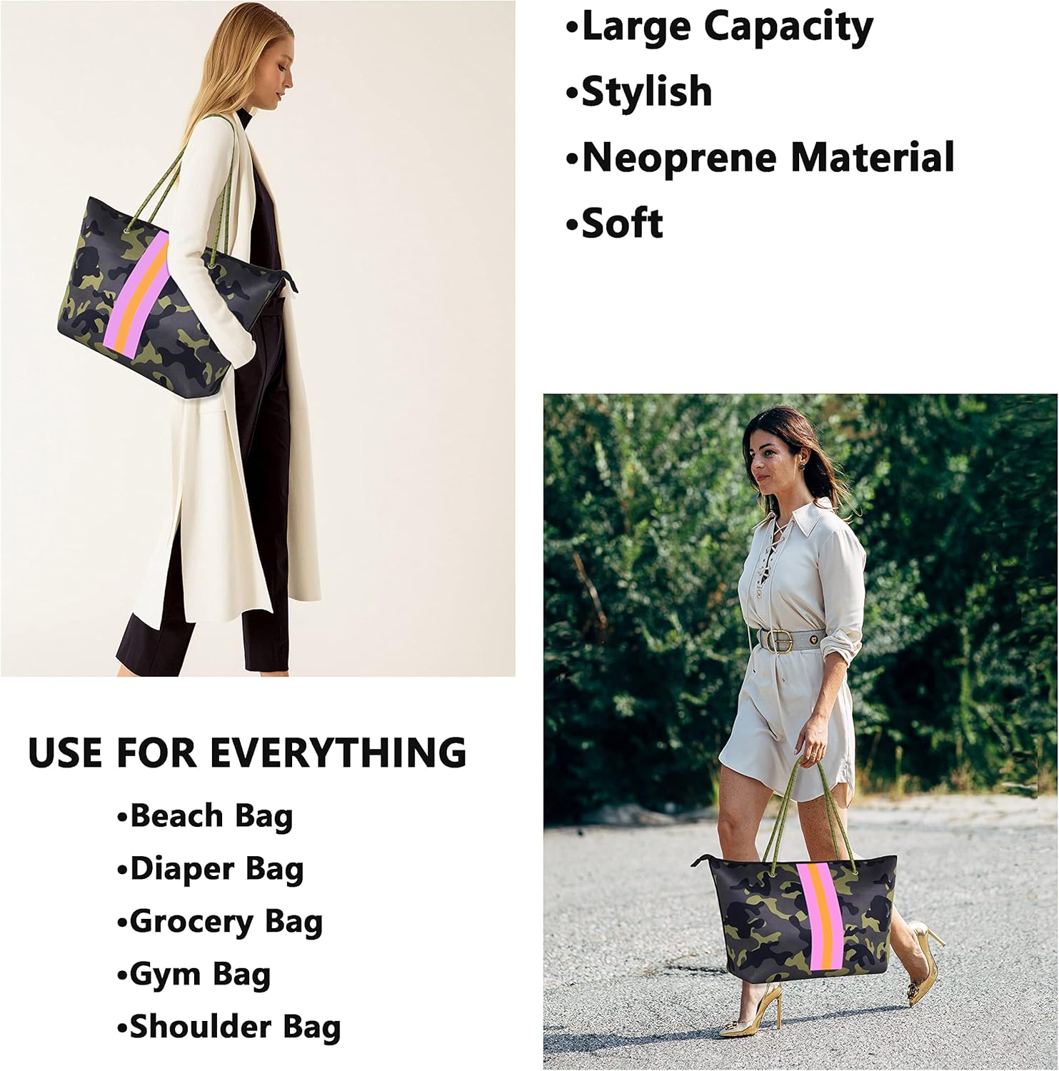- FASHIONABLE AND ELEGANT: Using the high-quality neoprene and polyester material, unique classic design style, these beach bags look particularly stylish and elegant. The same bag can be changed three styles, you have three options only pay a bag. Please look at the picture and make your choice.