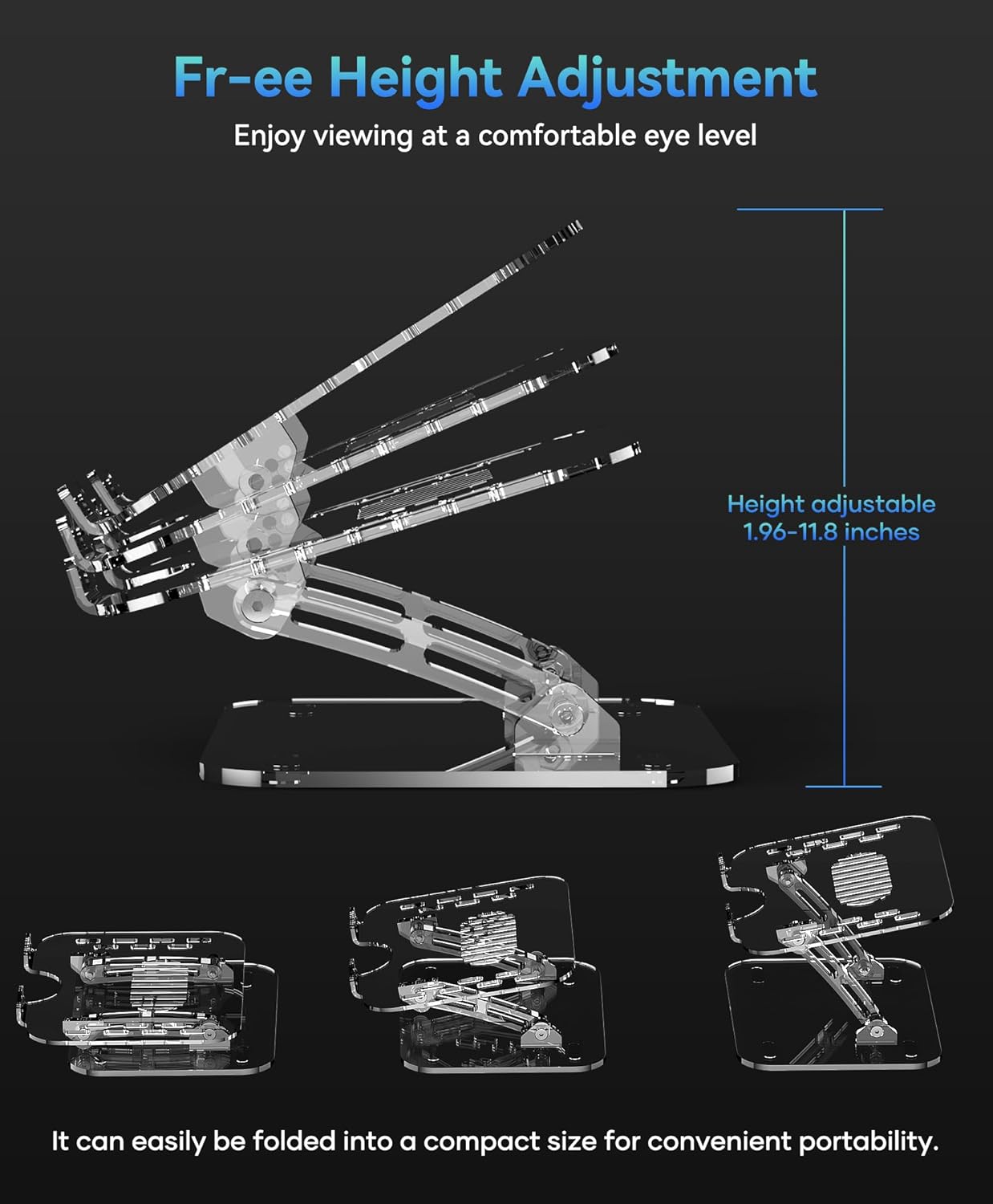 - 【Height Adjustment at Will】This clear laptop stand is in accordance with ergonomic design. The stand comes with a large wrench and a small wrench for you to adjust the stand at an ideal height and angle so that to help relieve your neck, shoulder, back, and eye pain. And improve your posture whiling for typing, watching, and sitting, contributing to improve your daily working productivity