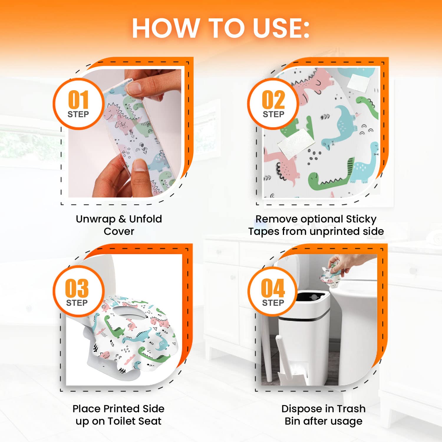 20 Extra Large Toilet Seat Covers Disposable for Kids & Adults-Toilet Covers Disposable for Travel-Toddler Toilet Seat Cover Liners for Potty Training-Individually Wrapped-Waterproof (Dinosaurs)