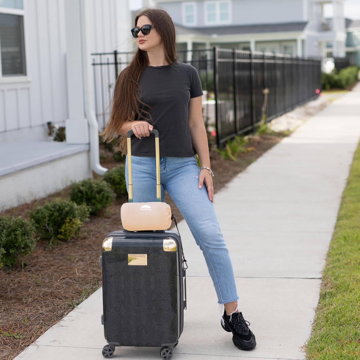 - Portable Travel Blanket packed in a carry case with luggage belt and carabiner clip: Our soft plane travel essential blanket has a drawstring bag with a belt, so you can easily secure the blanket to your luggage, suitcase, backpack, or handbag. The adjustable strap is designed to be seamless and convenient to carry. A backpack clip is included In the package ,so that this can be attached to a backpack or handbag.