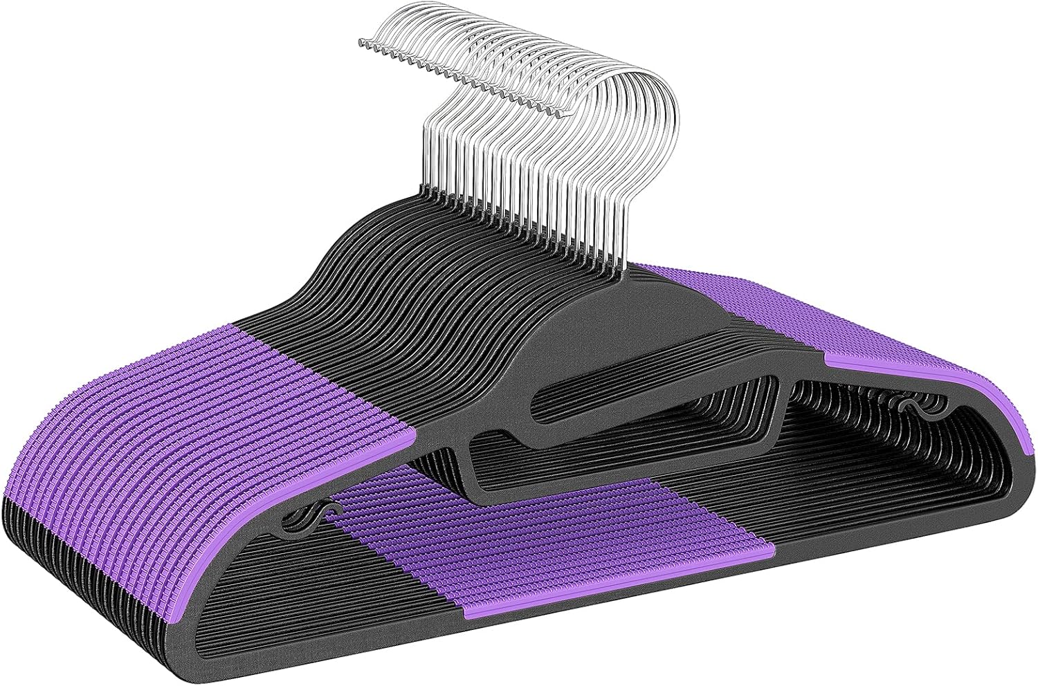 BAGAIL Plastic Hangers 50 Pack with Non-Slip Design,0.2 Inches Thick, 360°Swivel Hook Space Saving Organizer for Bedroom Closet,Shirts,Pants(Purple- S Shaped)