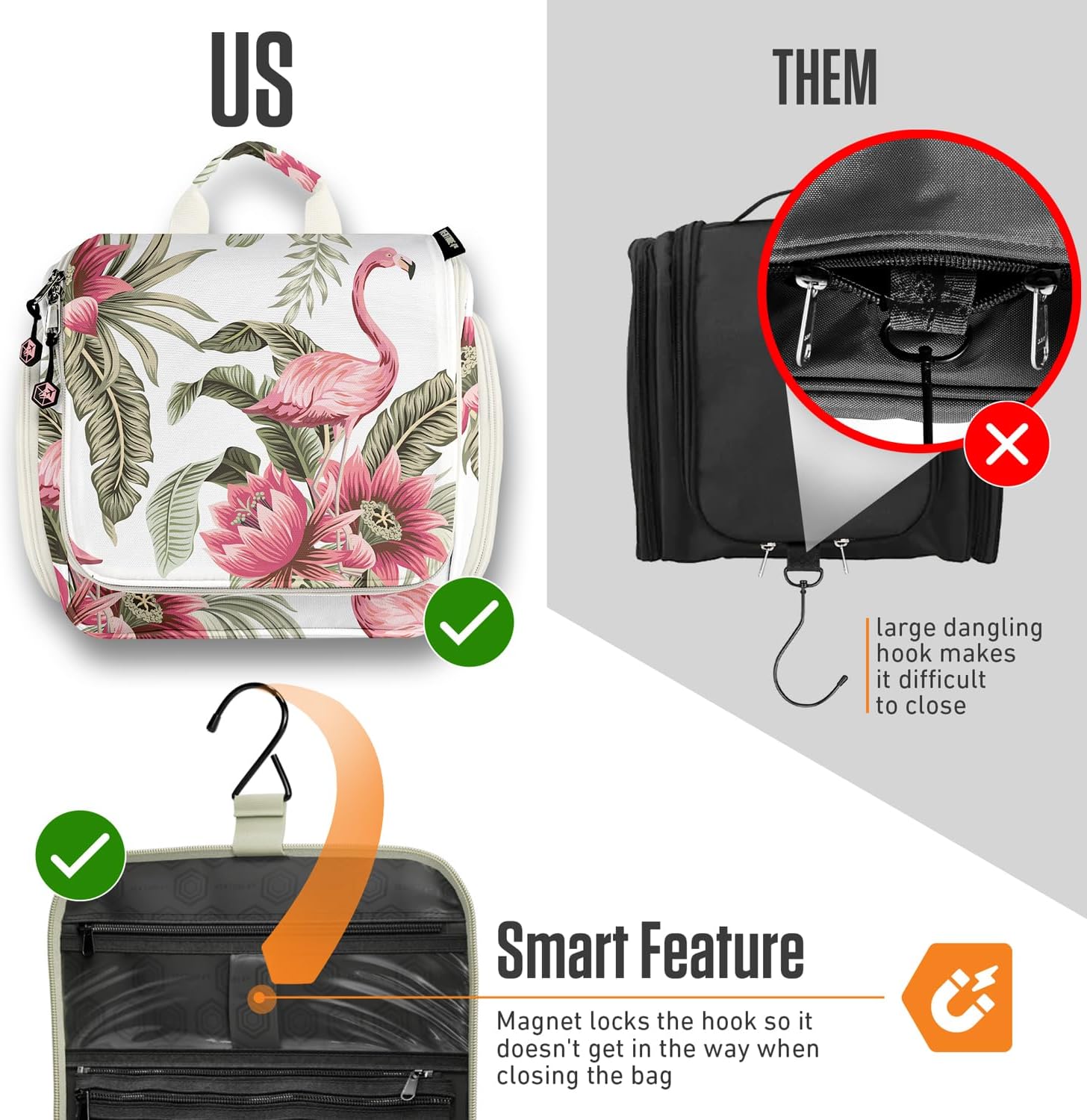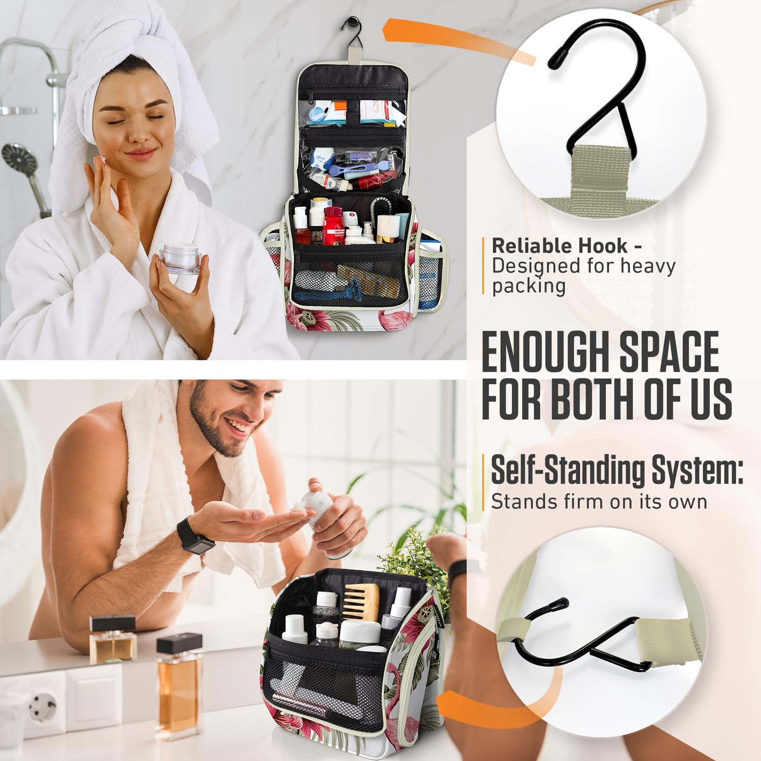 VENTURE 4TH Hanging Travel Toiletry Bag for Women & Men - Travel Organizer with Expandable Compartments & Removable Clear Pouch for Toiletries (Pink Flamingo)