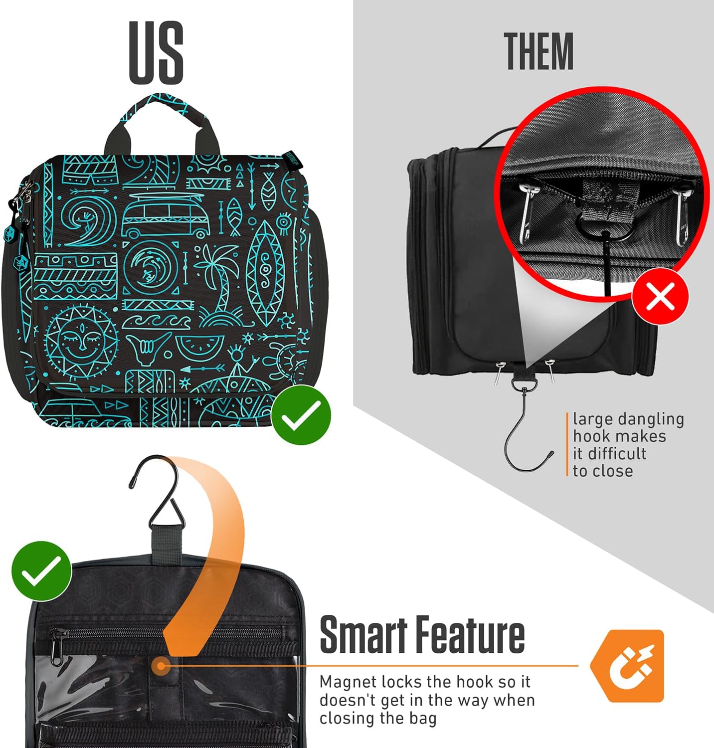 VENTURE 4TH Hanging Travel Toiletry Bag for Women & Men - Travel Organizer with Expandable Compartments & Removable Clear Pouch for Toiletries (Surfing Vibes)
