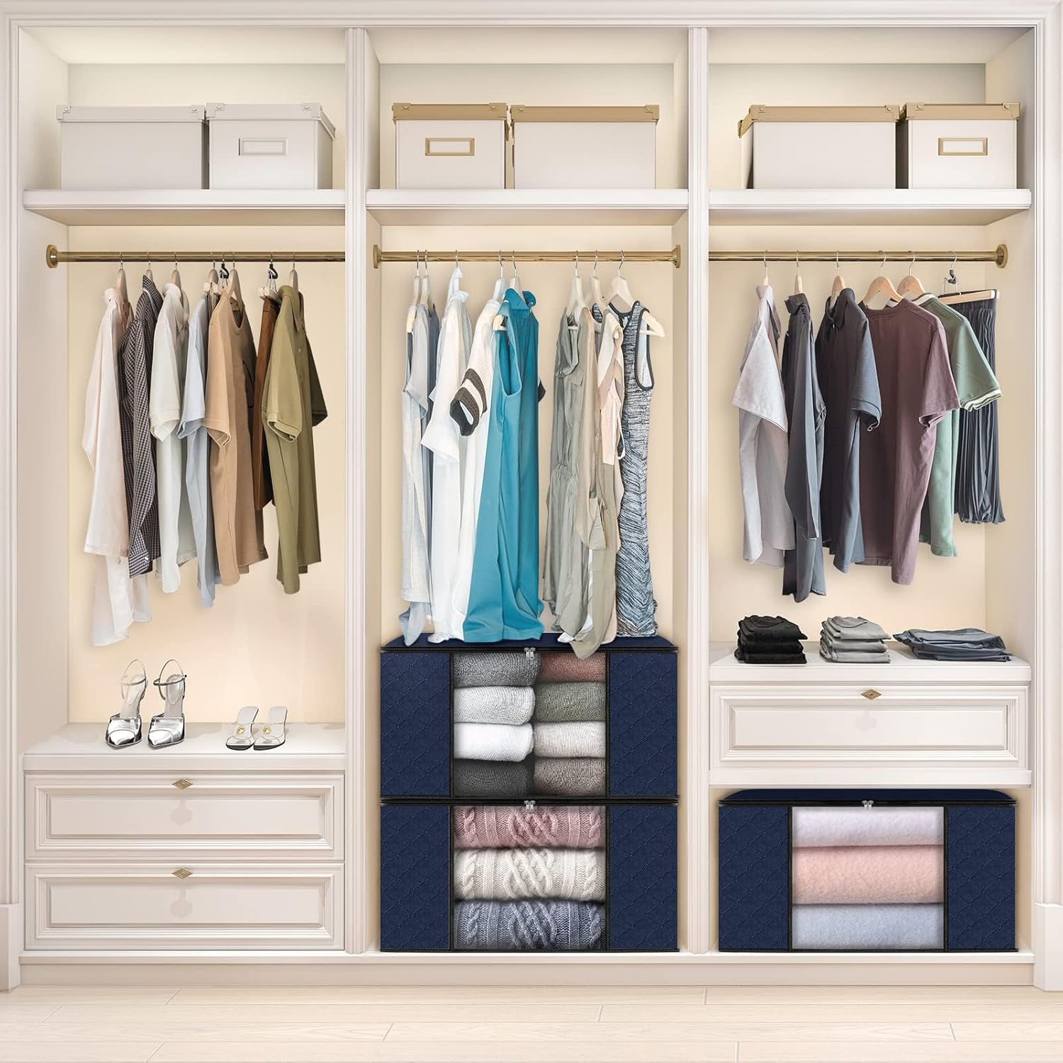 Fab totes 3 Pack Clothes Storage, Foldable Thick Fabric Blanket Storage Bags, Containers for Organizing Bedroom, Closet, Clothing, Comforter,Closet Organization with Handle,Blue