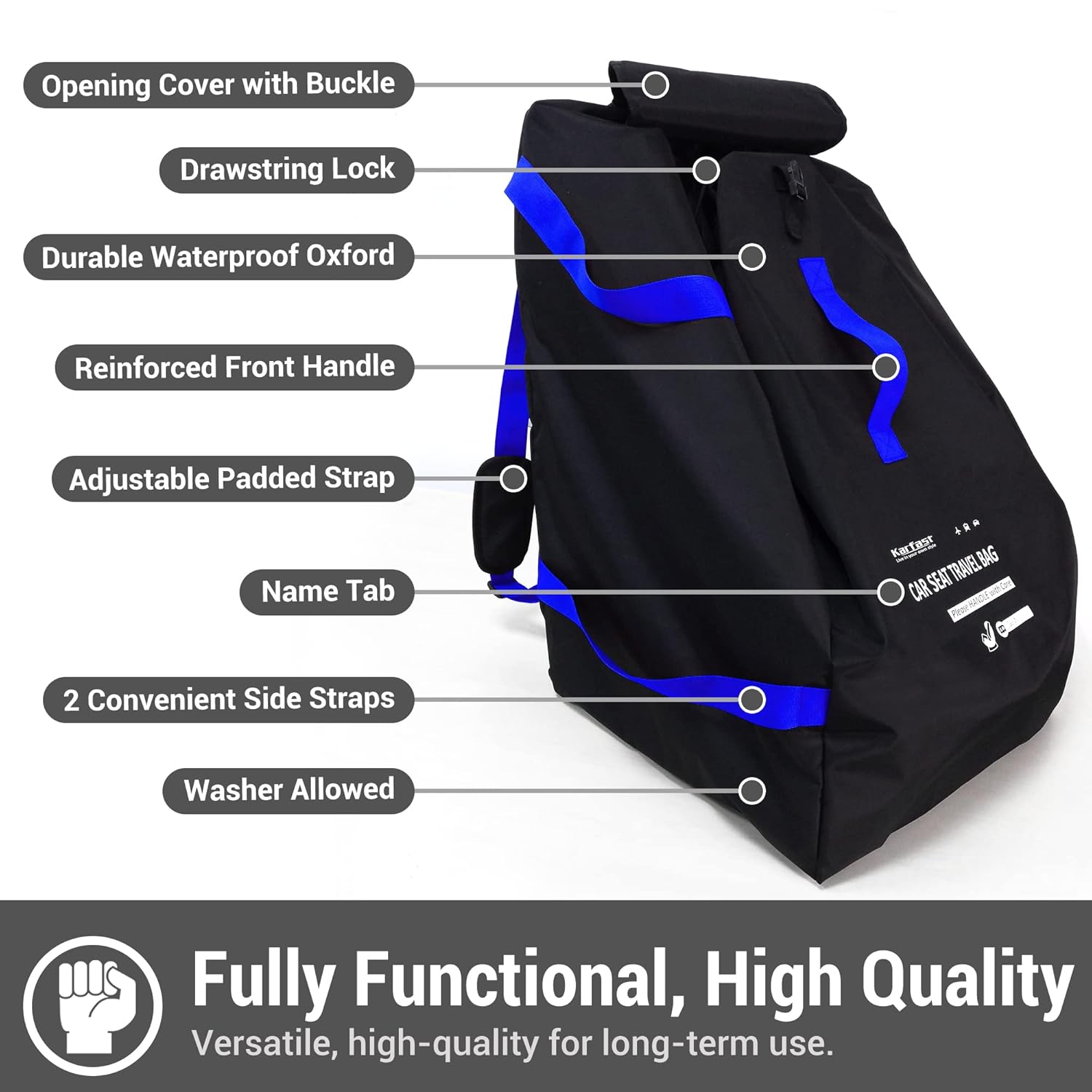 Car Seat Travel Bag Backpack for Air Travel - Karfast Universal Infant Carseat Gate Check Bag Cover for Airplane, Foldable with Pouch, Blue