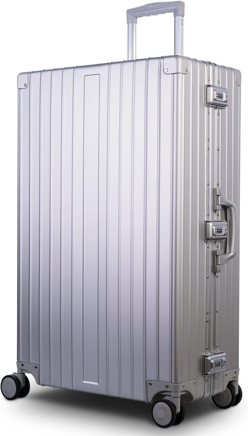 TRAVELKING All Aluminum Luggage Zipperless Hard Shell Luggage Case with TSA Lock Spinner Alloy Metal Suitcase (Silver, 28")