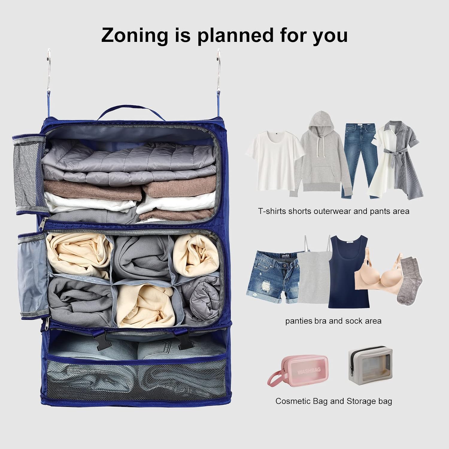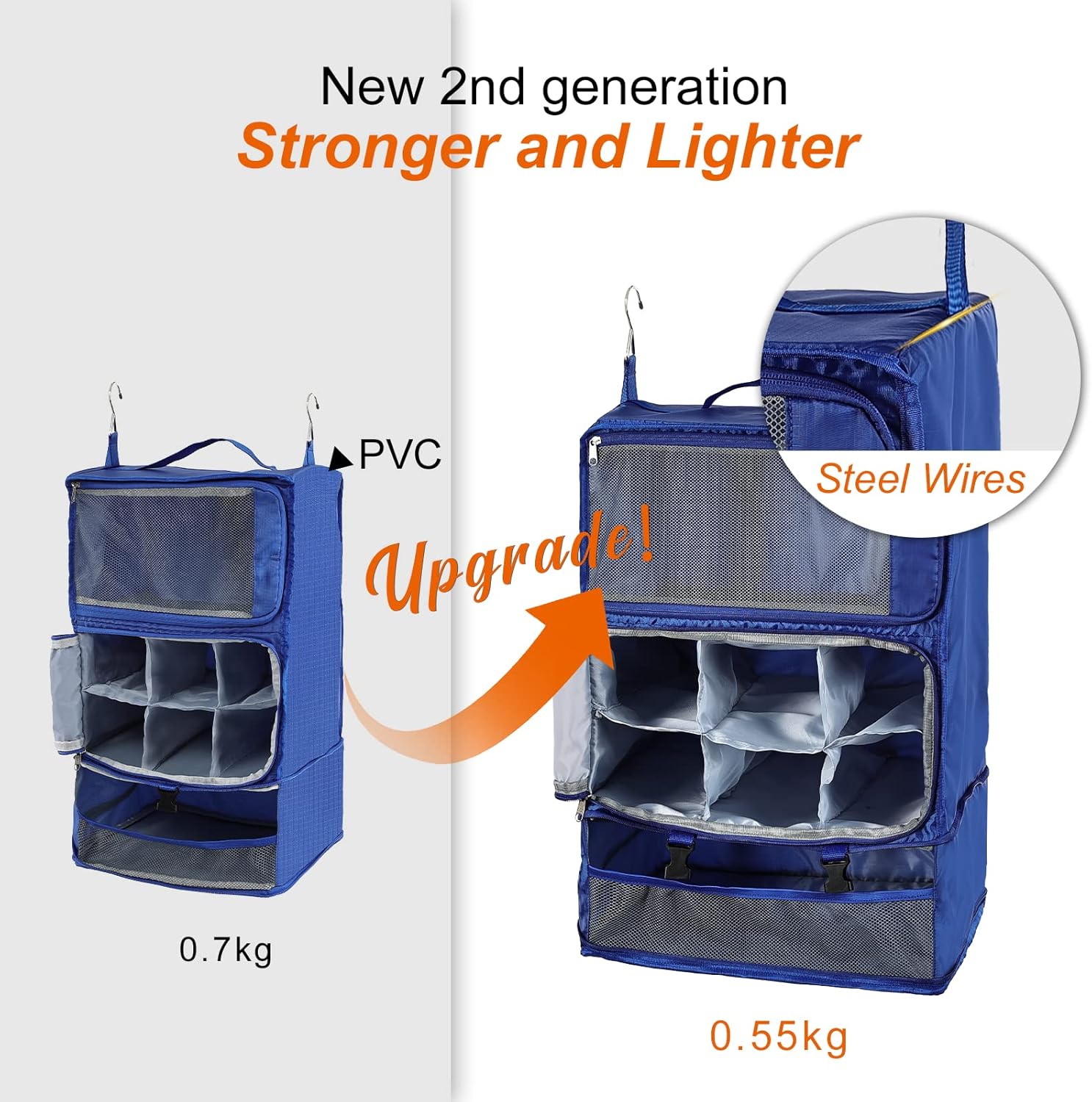 TABITORA Travel Portable Hanging Shelves Closet Organizer Packing Luggage Organizer and Storage with Multifunctional and Foldable Invisible Compartment,Lightweight,for Suitcase, RV,Closet…Blue,XL