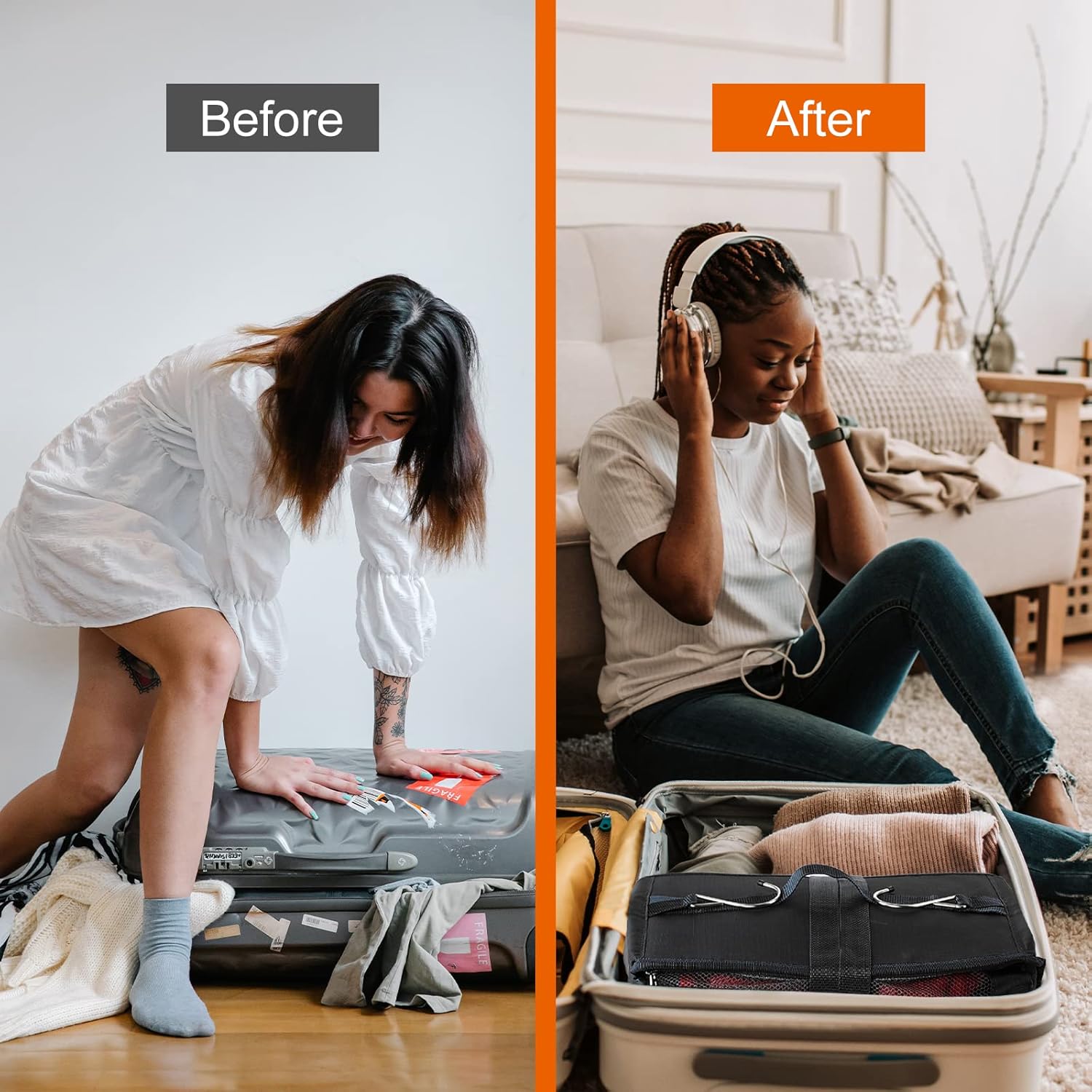 TABITORA Travel Portable Hanging Shelves Closet Organizer Packing Luggage Storage with Multifunctional and Foldable Invisible Compartment,Lightweight, for Suitcase, RV,Closet…Black,XL