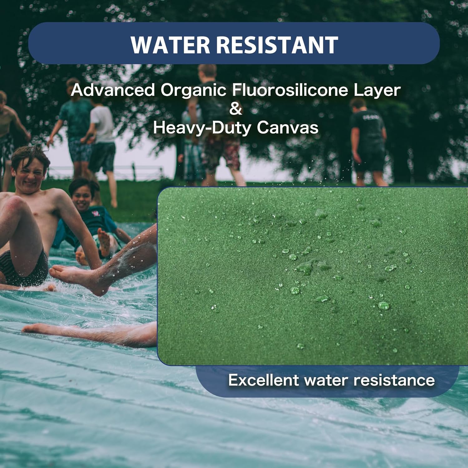 - [ADVANCED WATER RESISTANCE]: Heavy duty 22 Mil thick, 14 oz canvas for excellent tear resistance and good breathability of canvas tarps. Waterproofing layer made of advanced organic fluorosilicone material for better water resistance than traditional wax treated tarpaulins.
