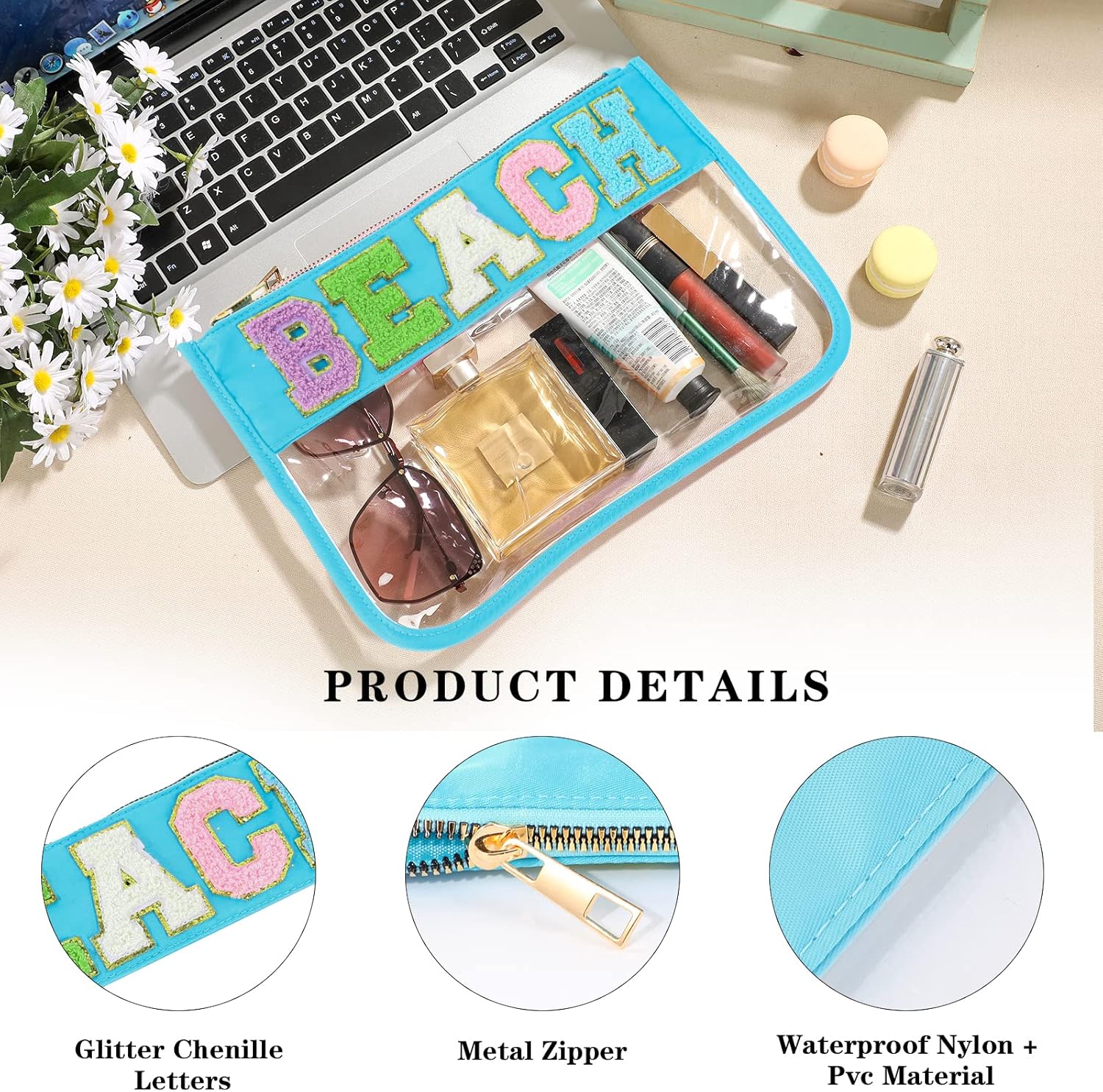 DYSHAYEN Chenille Letter Clear Zipper Pouch for Travel,Nylon Clear Cosmetic Bag,Makeup Travel Bag for Women Girls 11.8 Inches x 8.2 Inches