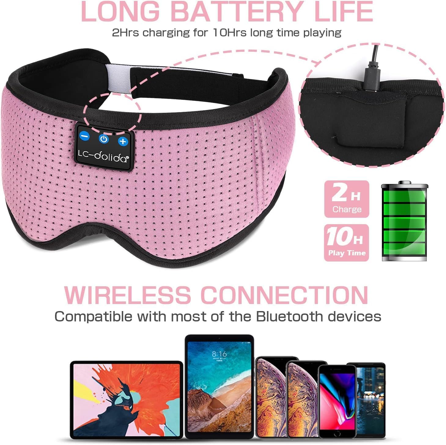 LC-dolida Sleep Mask with Bluetooth Headphones, Sleep Headphones Bluetooth Sleep Mask 3D Sleeping Headphones for Side Sleepers Best Gift and Travel Essential