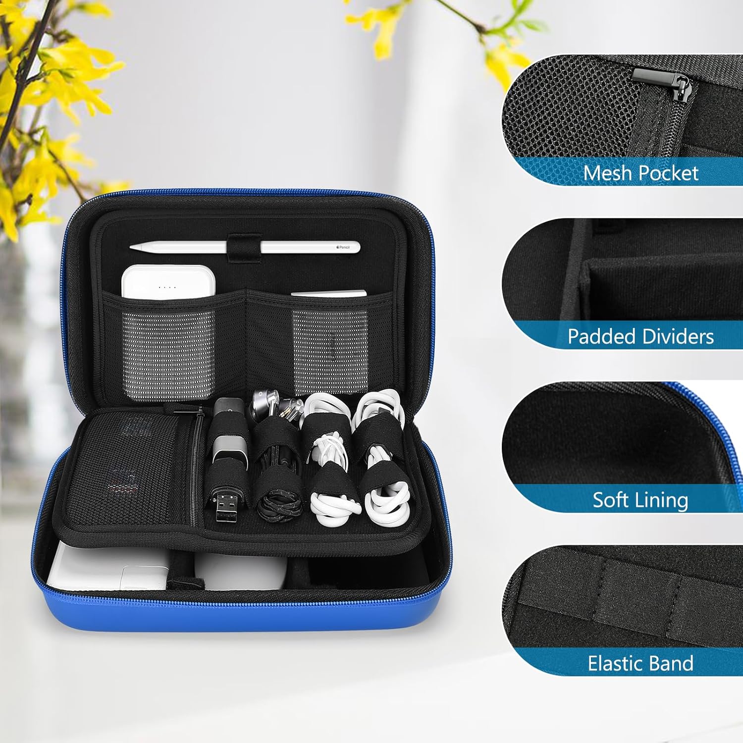- Large Capacity: Portable hard EVA carrying case for organizing small electronics accessories, like MacBoook charger, cables, power bank, USB flash disk, SD card, mouse, earphone, power adapter, etc. External dimension: 9.9 x 6.3 x 2.56 inch