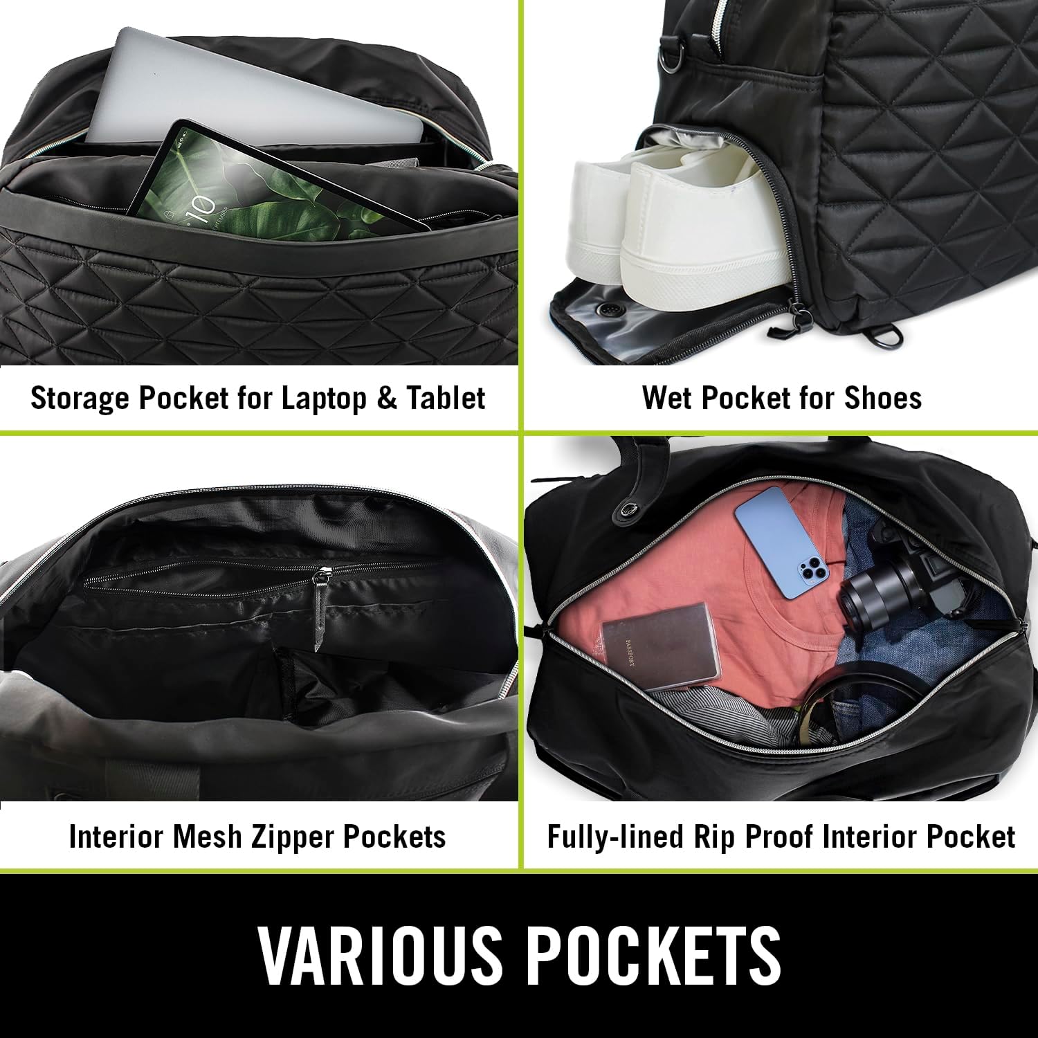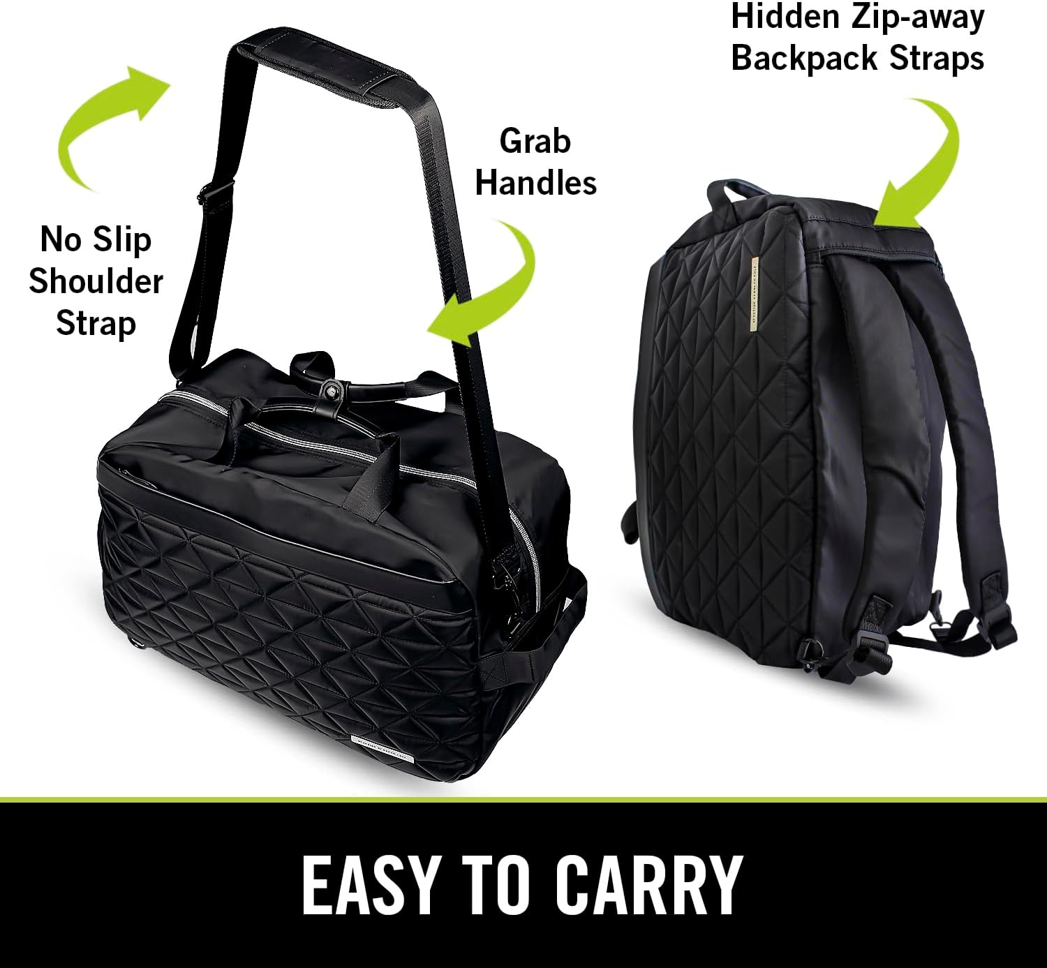- READY FOR THE UNEXPECTED? The bag can be switched as quickly as your plans with its dual functionality. This bag allows you to carry it as a duffel over the shoulder, by the handles, or as a backpack, freeing up your hands when traveling or running errands.