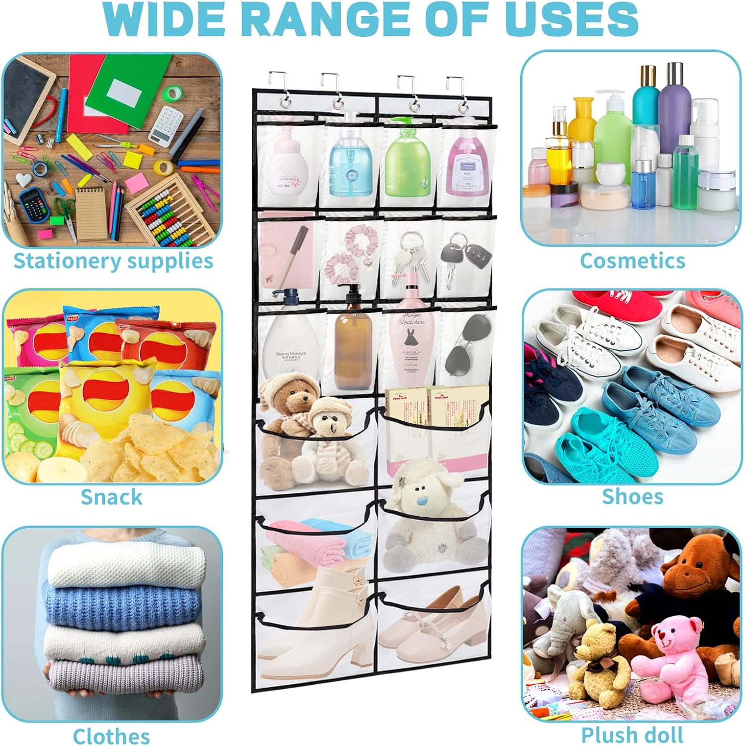 - ăWide ApplicationsăMulti-Function Hanging Shoe Storage is not only suitable for storing all kinds of shoes,boots,slippers, but also great for organizing your toiletries, hats, clothes, baby toys, scarves, gloves and so on. Keep stuff organized and not laying on the floor in piles anymore.Take almost no space at all up.
