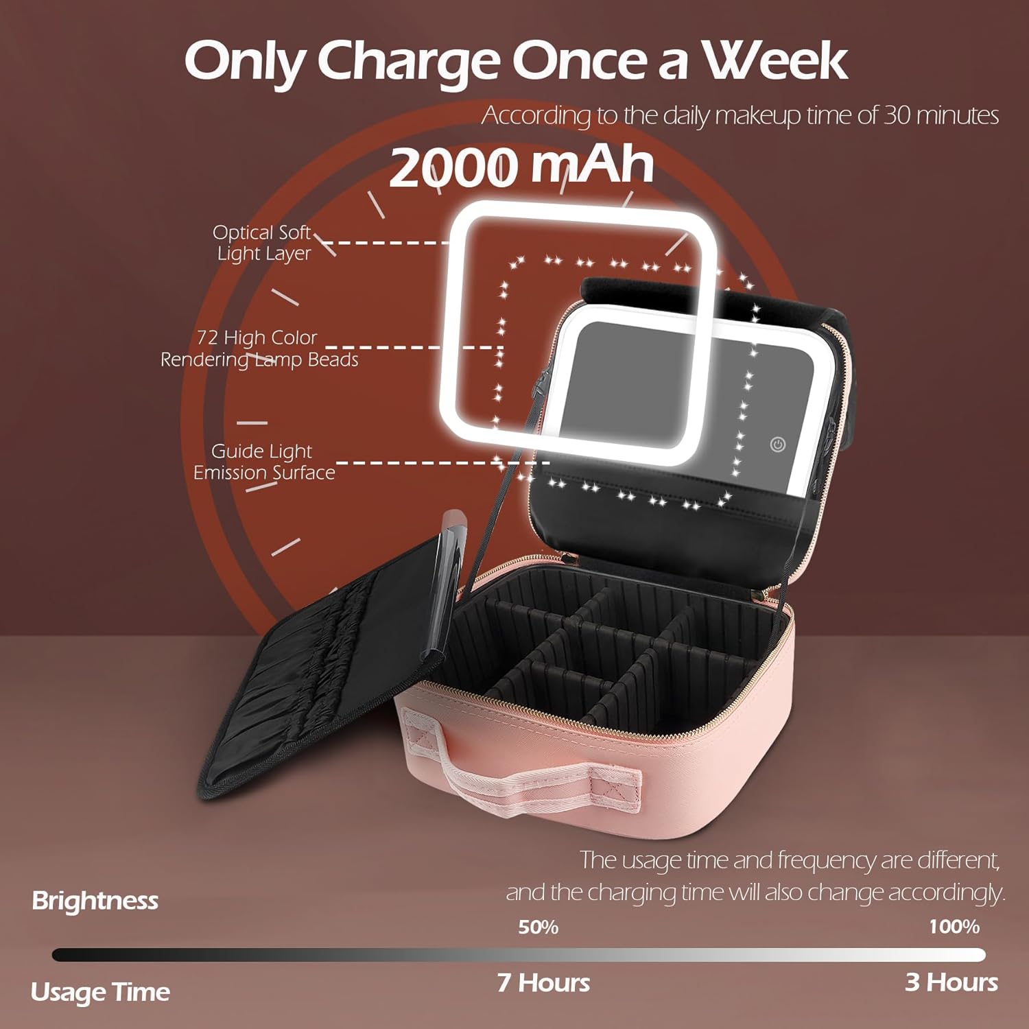MOMIRA Travel Makeup Bag Cosmetic Bag with Lighted Mirror, Adjustable Brightness in 3 Color Scenarios, Waterproof, 10x Magnifying Mirror, Rotatable Independent Light Mirror- Phosphor(Solid)