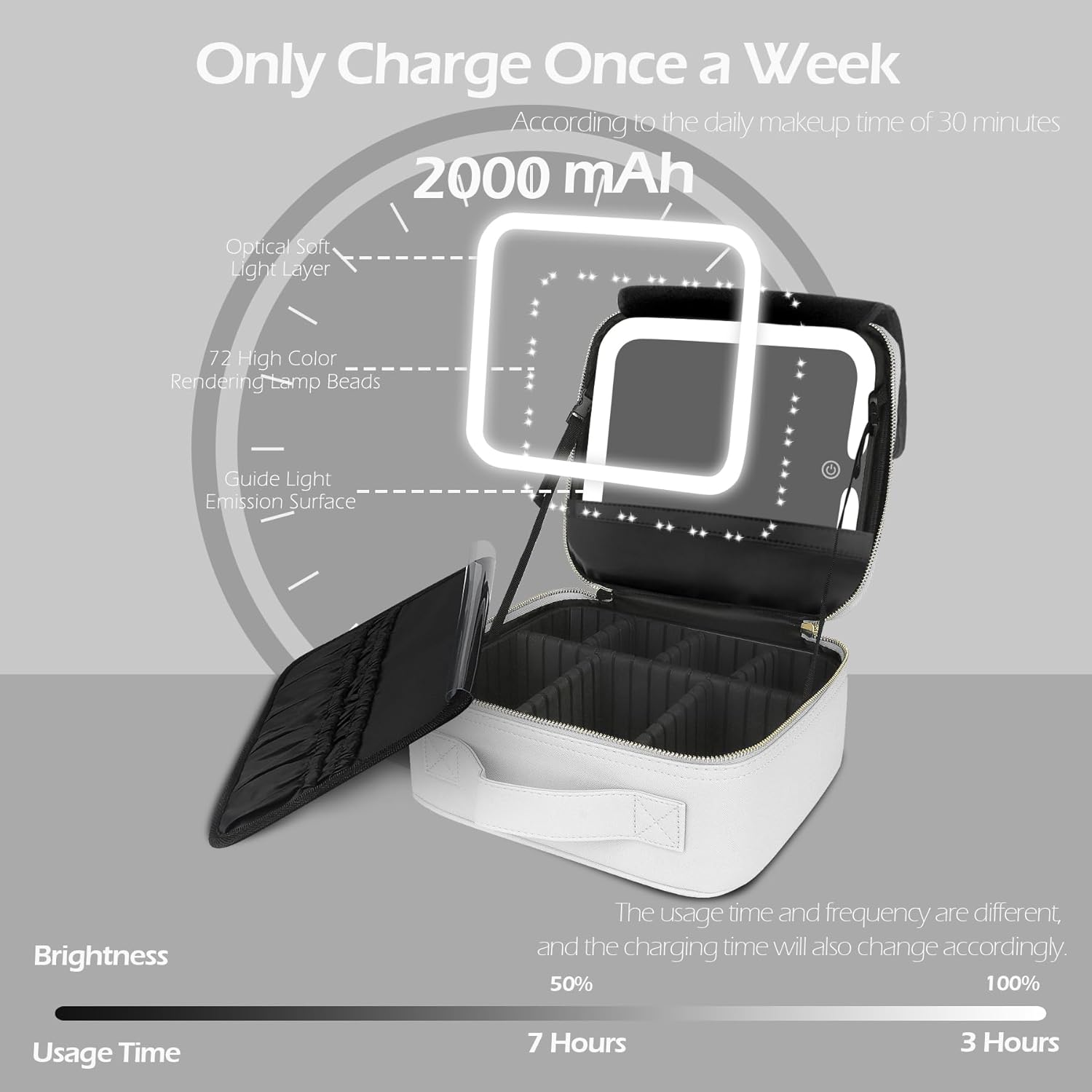 MOMIRA Travel Makeup Bag Cosmetic Bag Makeup Organizer Bag with Lighted Mirror, Adjustable Brightness in 3 Color Scenarios, Waterproof Makeup Train Case, Gift for Women - Silver