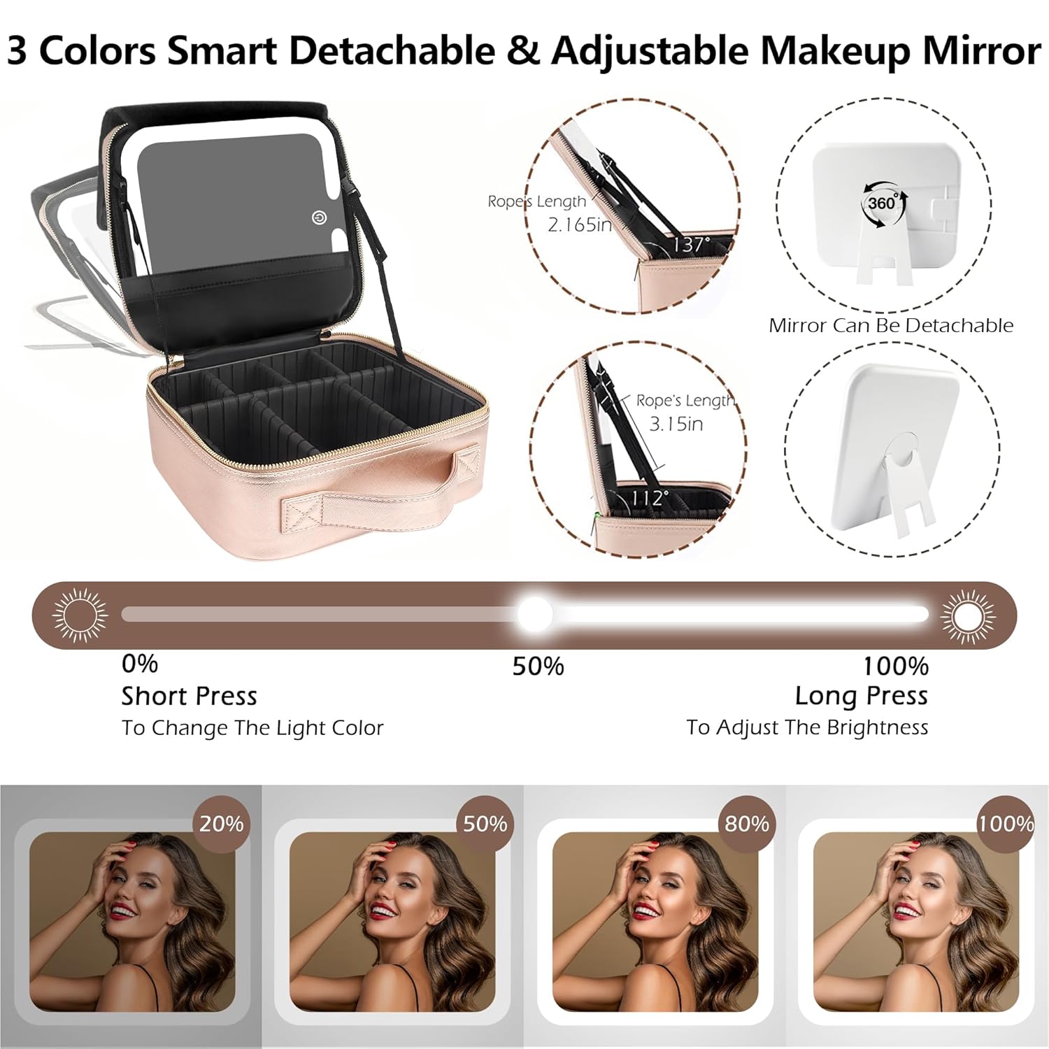- 💡【Detachable Smart Fill Light Mirror】Enhance your makeup routine with this smart fill light mirror featuring adjustable light intensity and a memory function. The 360° adjustable mirror stand ensures no angle is missed, while the touch switch offers cool, natural, or warm light options for true-to-life makeup application. Say goodbye to battery worries with its long-lasting 2000mAh battery.