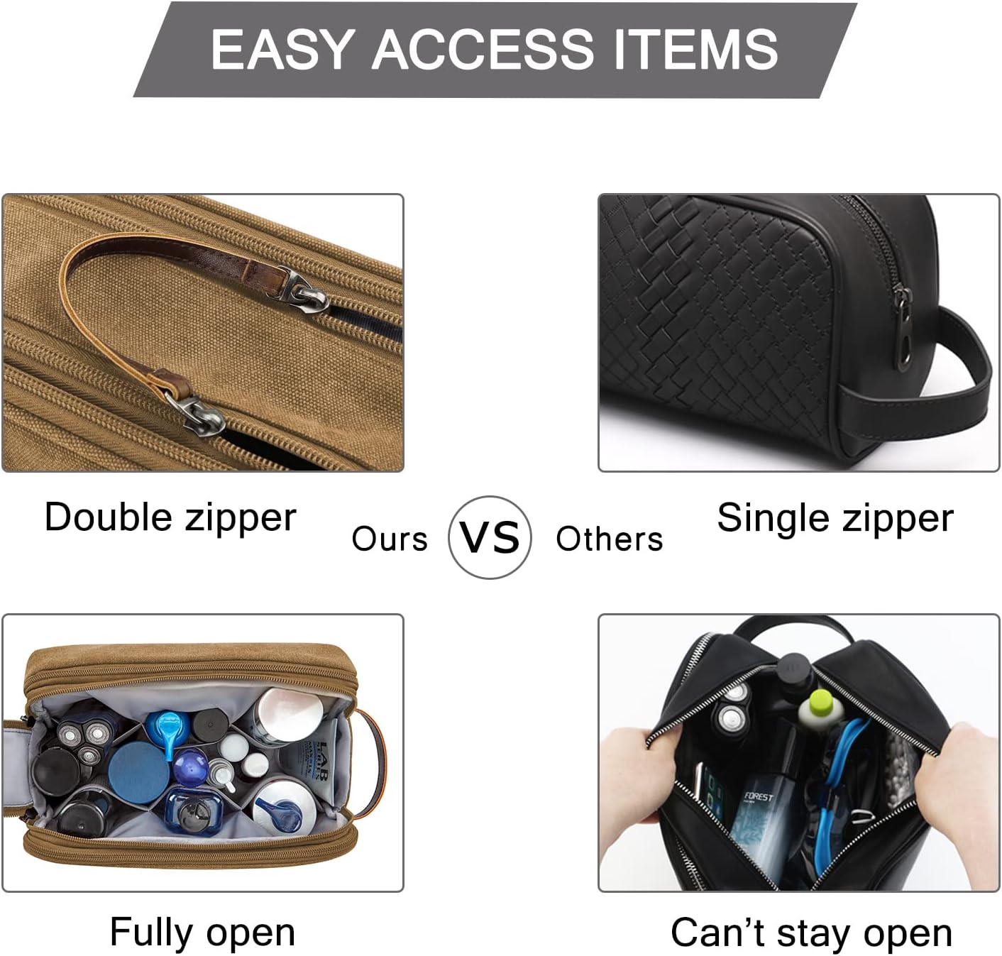 - ๐๐๐ซ๐ฌ๐๐ญ๐ข๐ฅ๐ ๐ ๐๐๐ญ๐ฎ๐ซ๐๐ฌ- Dopp kit is equipped with a sturdy leather handle, inner elastic band , fashion canvas material to meet different storage needs.
