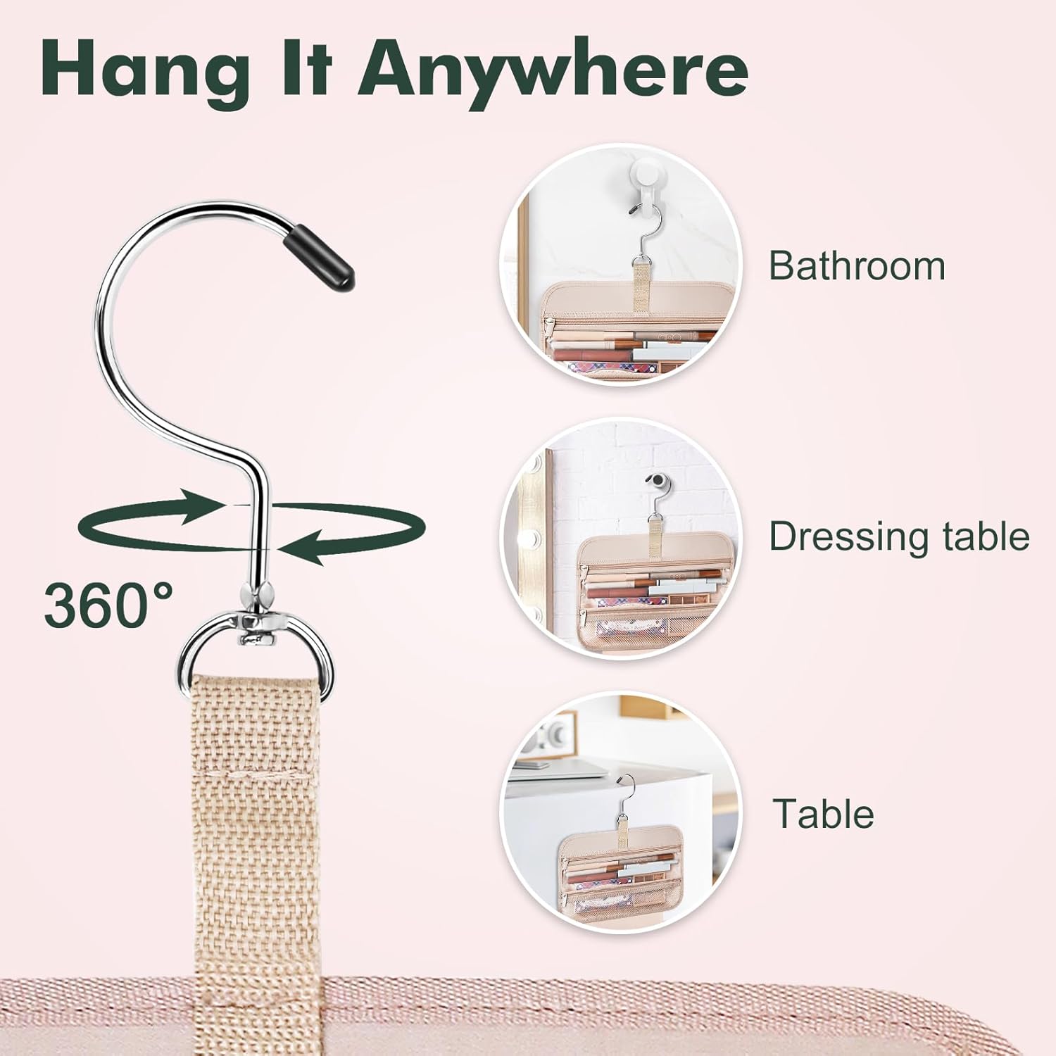 • Humanized Design: This cosmetic bag hook is made of 304 stainless steel metal material, which is sturdy and functional, you can hang the cosmetic bag on the towel rack, cloakroom, or any place where you need to display your toiletries and cosmetics. Travel toiletry bag with a U-shaped opening design is more convenient for you to pick up items.