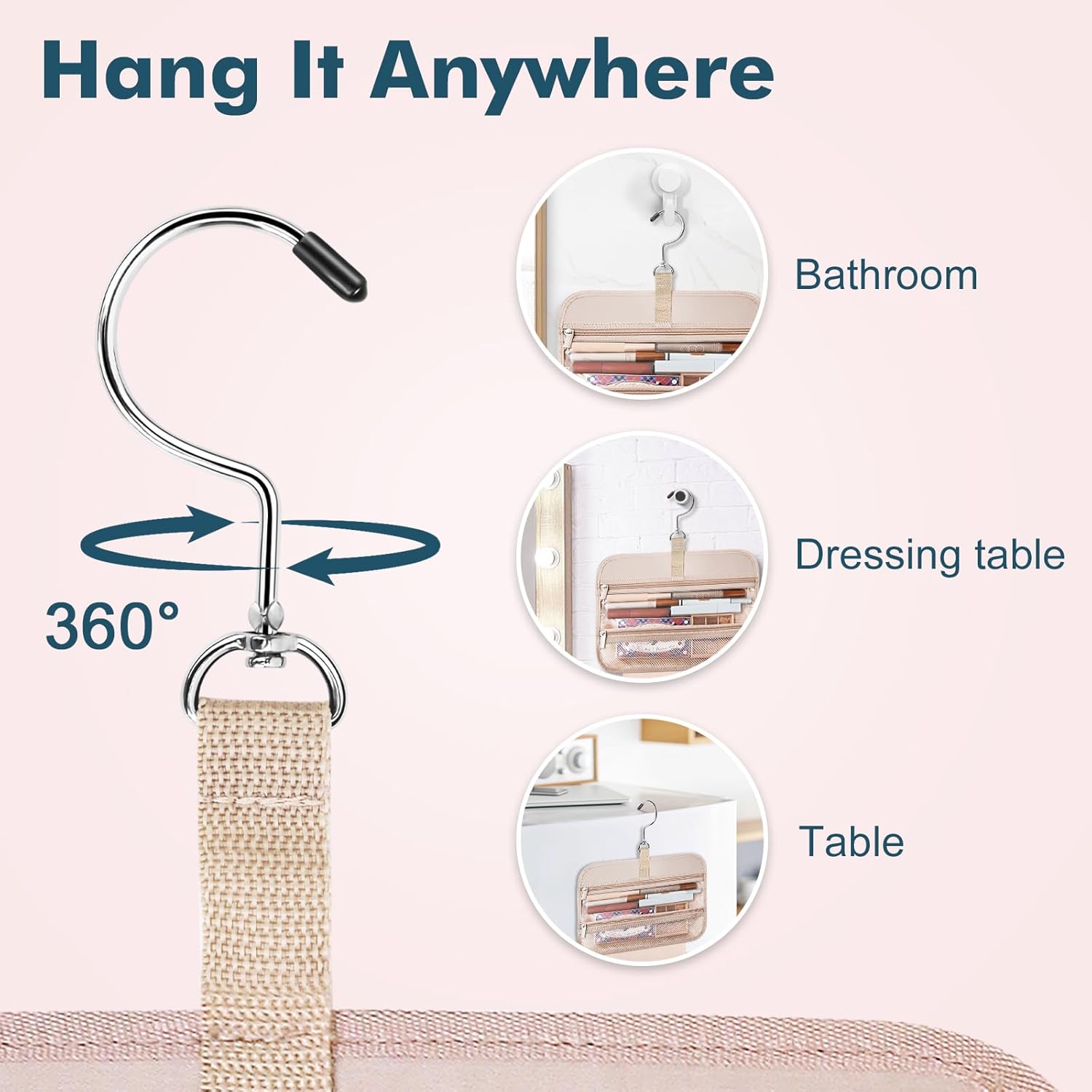 - Humanized Design: This cosmetic bag hook is made of 304 stainless steel metal material, which is sturdy and functional, you can hang the cosmetic bag on the towel rack, cloakroom, or any place where you need to display your toiletries and cosmetics. Travel toiletry bag with a U-shaped opening design is more convenient for you to pick up items.