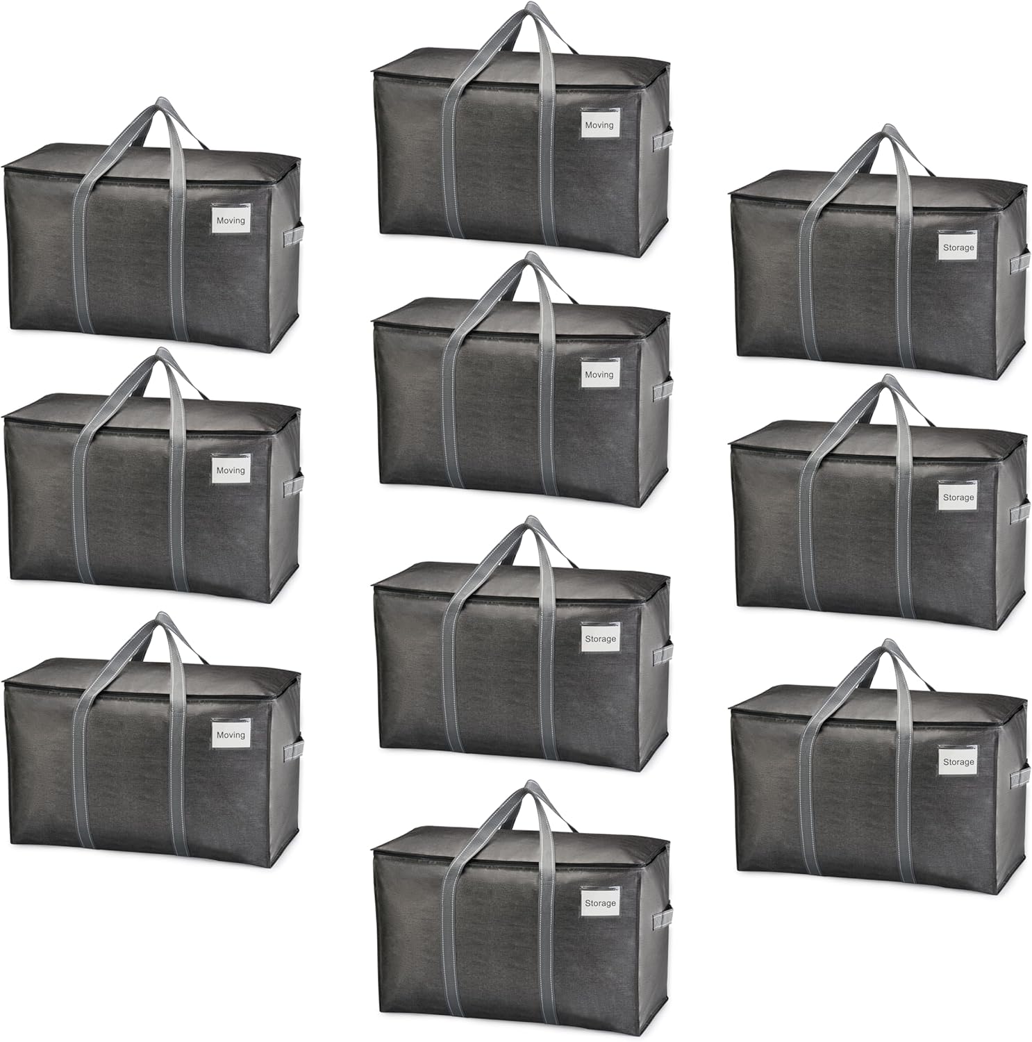VENO 10 Pack Moving Bags, Heavy Duty, Moving Boxes Alternative, Packing Storage Supplies for Dorm Room Essentials with Zipper for Clothes, Extra Large Totes for Packaging (Dark Gray, 10 Pack)