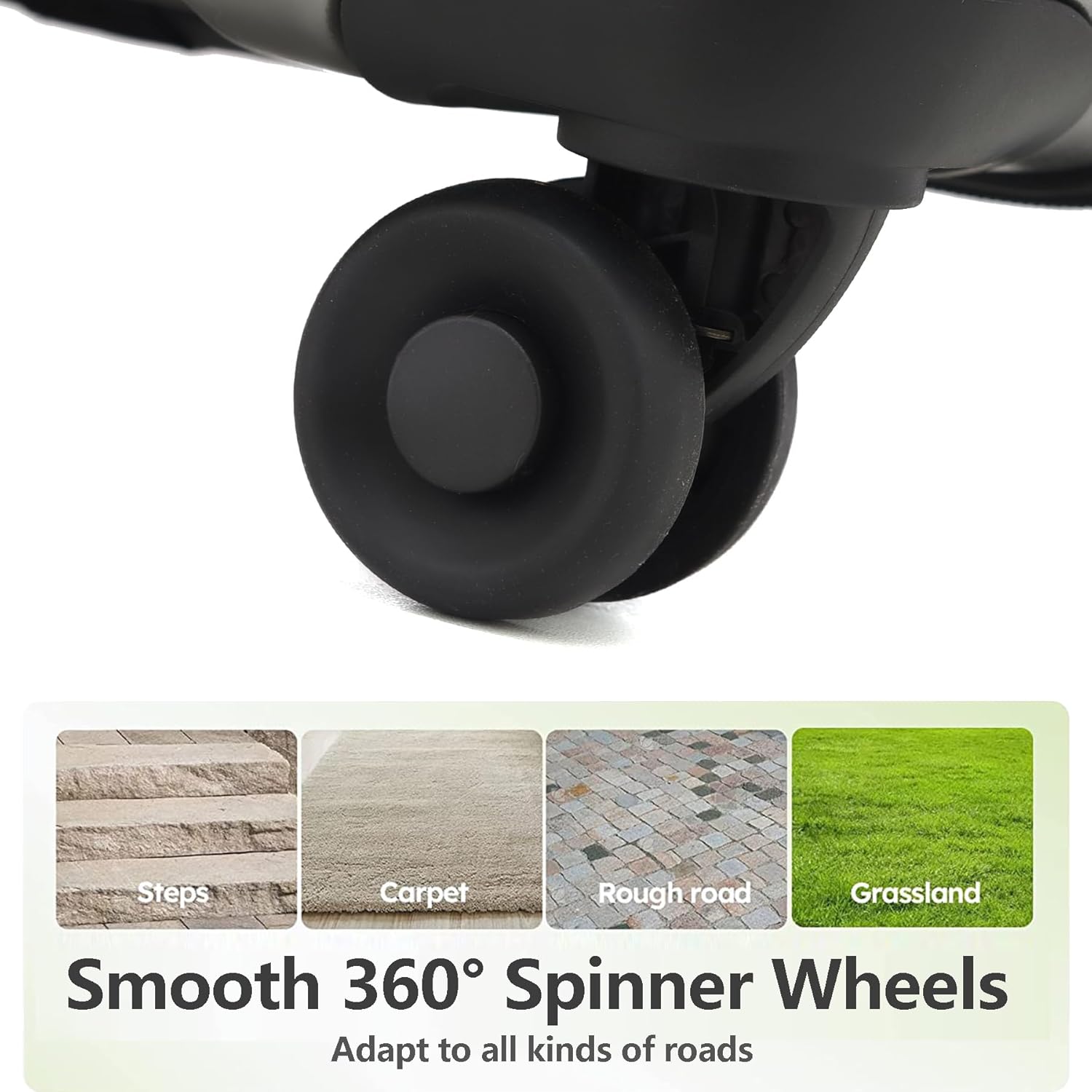 - Silent Spinner Wheel & Telescopic Handdle:4 silent spinner wheels, with soft TPU and lubricating balls inside, adapt to various grounds, and the 360° movement is very quiet and smooth. Adjustable telescopic handle, 3 levels of height adjustment, can meet the needs of different heights, and the smooth up and down design makes it more comfortable to carry.