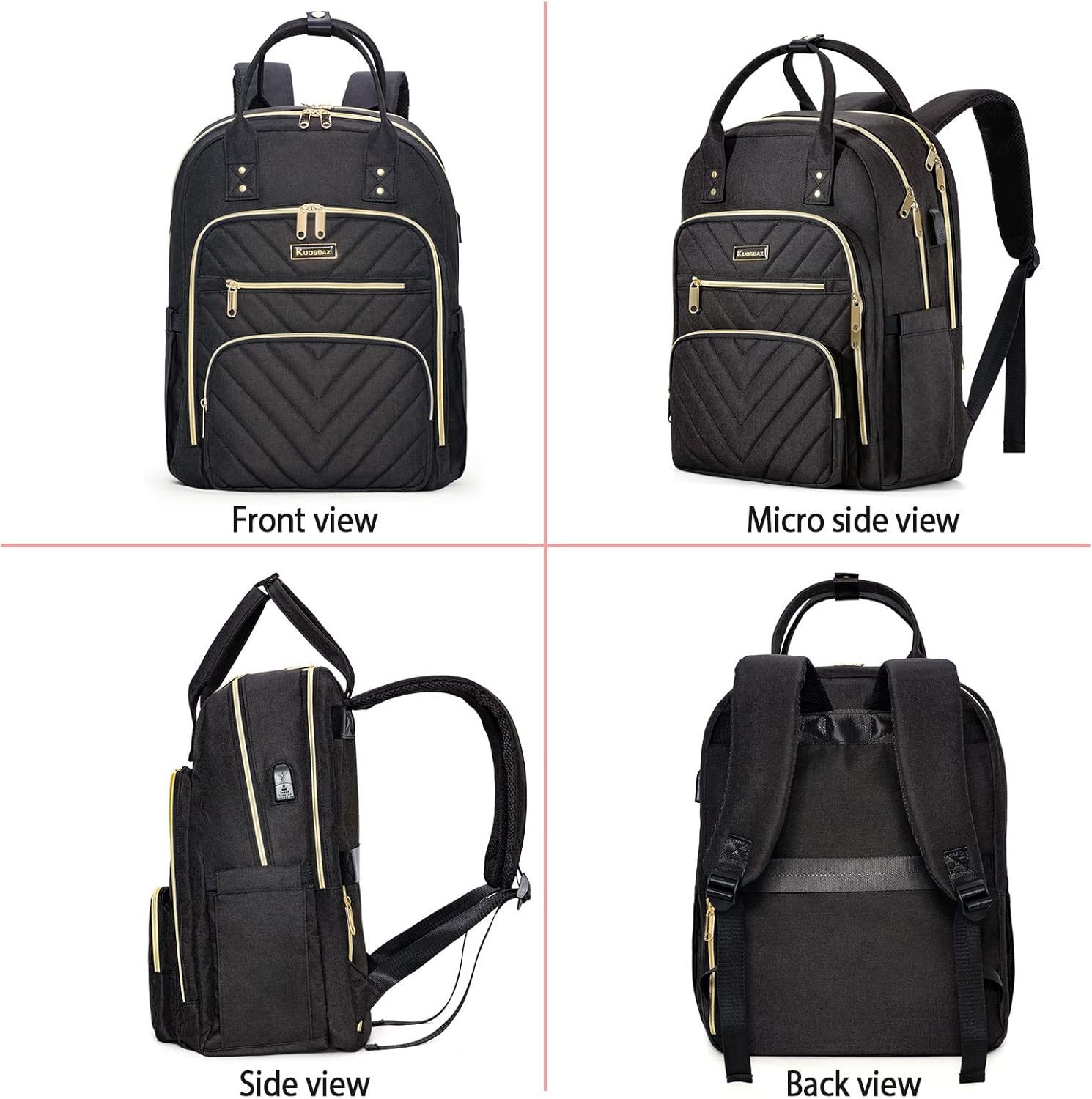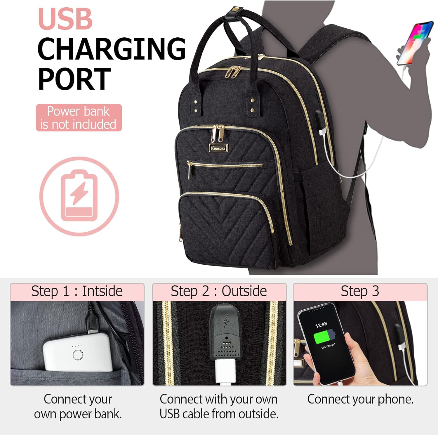 - USB Charging Port Design: There is a USB charging port extension on the side of the work backpack, with a built-in charging cable inside, which is convenient to charge your phone (POWER BANK is not included). Kuosdaz work bag is a very beautiful and very functional bag.