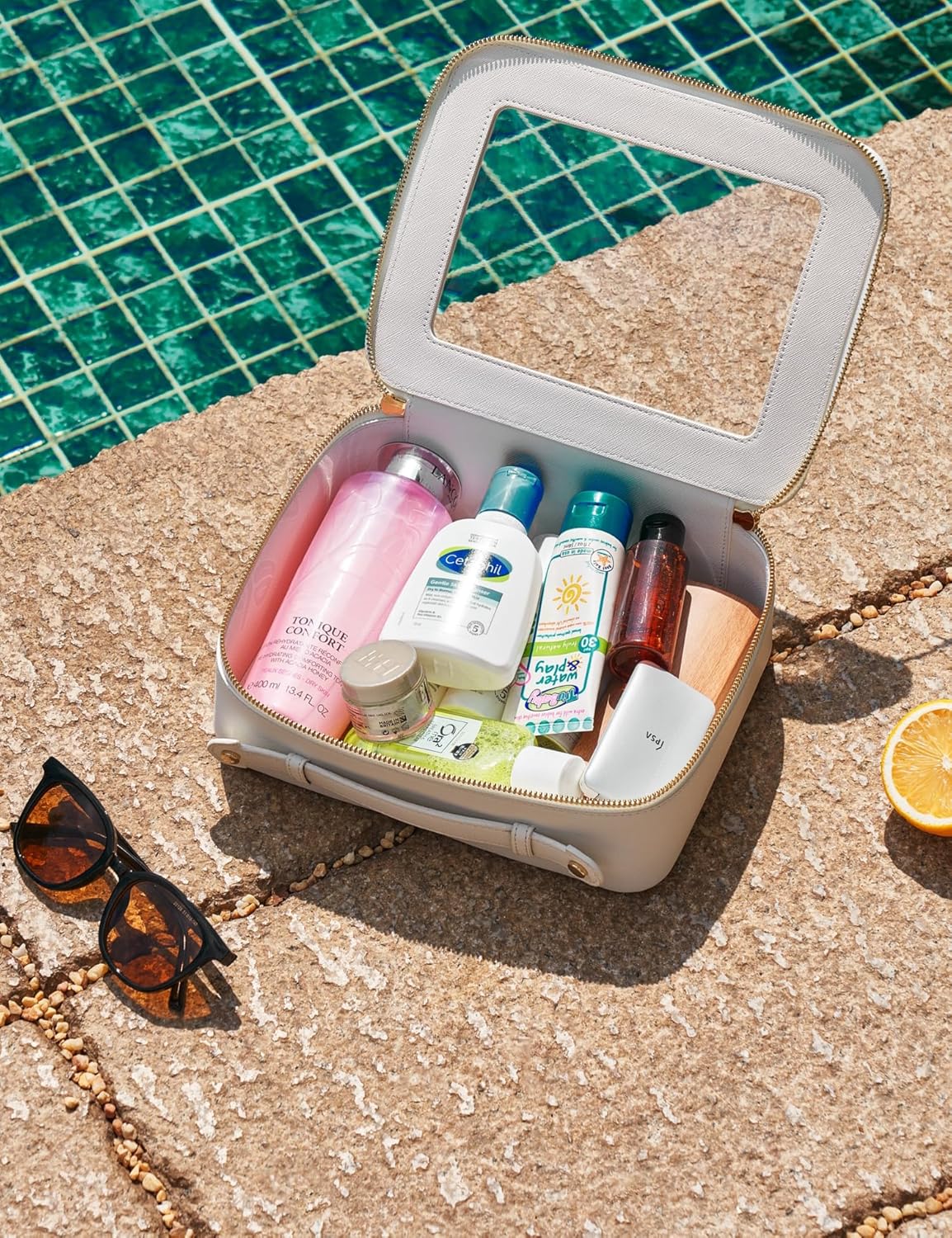- [Spacious and Roomy] – The white travel make up bag measures 9.6'' x 7.5'' x 3.1'' (24.5cm x 19cm x 8cm), ideal for extended trips or situations where you need to carry a comprehensive collection of makeup and skincare products. It is designed to fit comfortably in suitcases and big travel bags.
