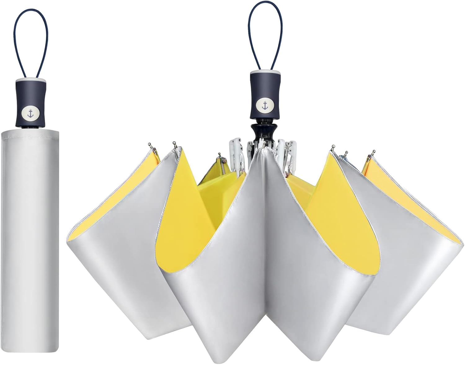 - ✅Windproof Travel Umbrella: 8-Ribs Fiberglass + Aviation aluminum alloy (Make the umbrella not only strong, but also lightweight). Our Unique Frame Systems are made of Premium Fiberglass and umbrella shaft High-Quality Aviation aluminum alloy so that you never have to confront yourself with the hassle of a broken or rusted umbrella. which makes the umbrella stronger than other umbrellas, and strong metal frame to ensure the durability and stability.