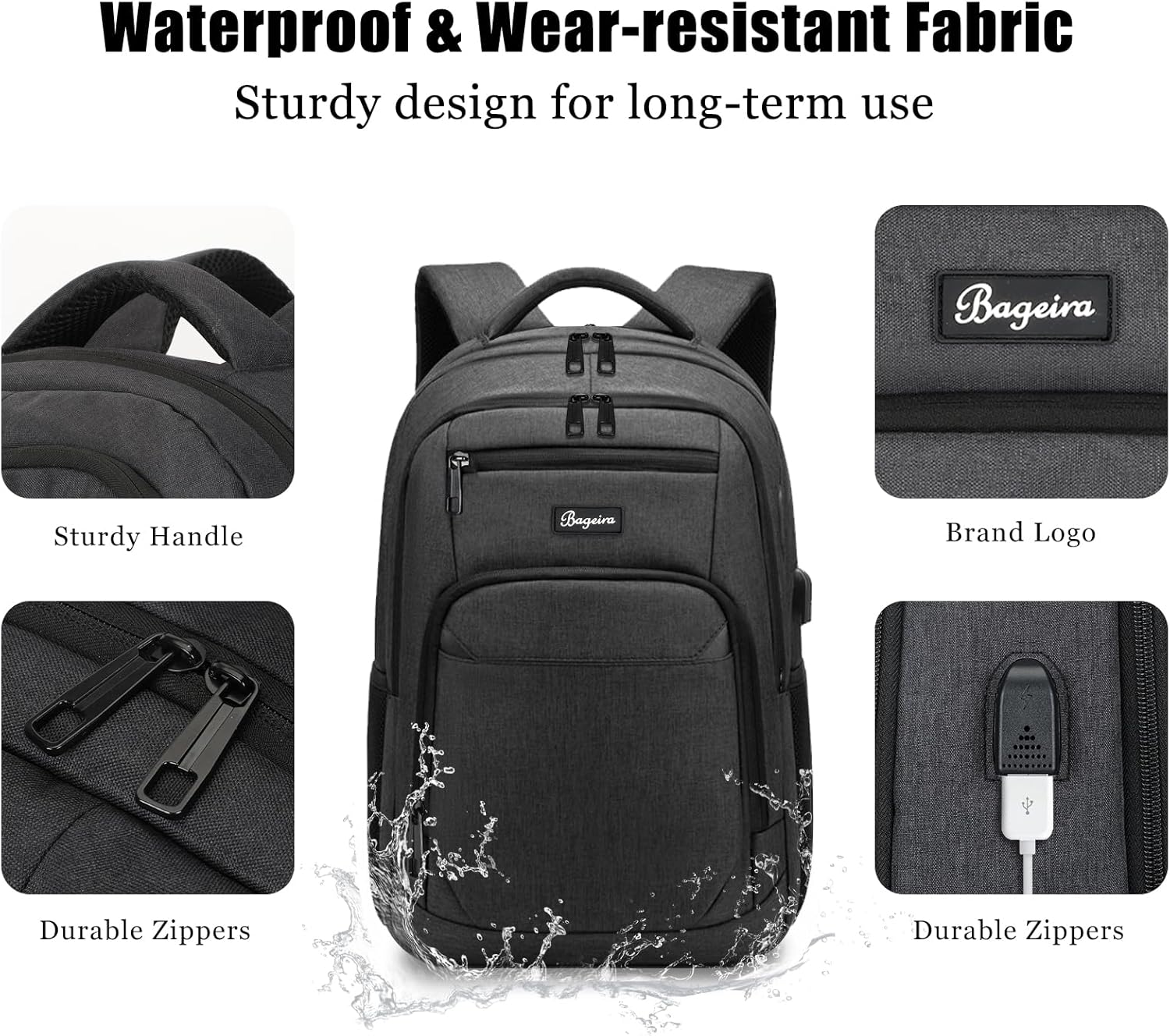 - USB PORT: The school backpack for teen boys features a practical design with a USB charging port that conveniently charges your electronic devices by connecting them to external cables and internal power sources. (Note: power bank not included)