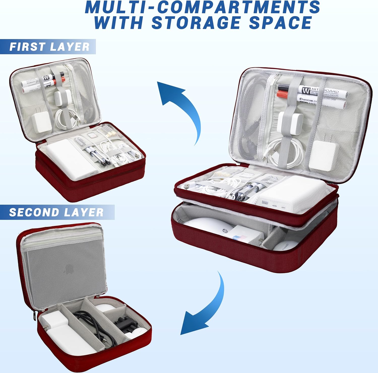 Electronics Organizer,Travel Cord Organizer Pouch, Portable Cable Organizer Bags, Waterproof Electronic Accessories Storage Case for Cables, Cords, Charger, Phone (Three Layer-Winered)