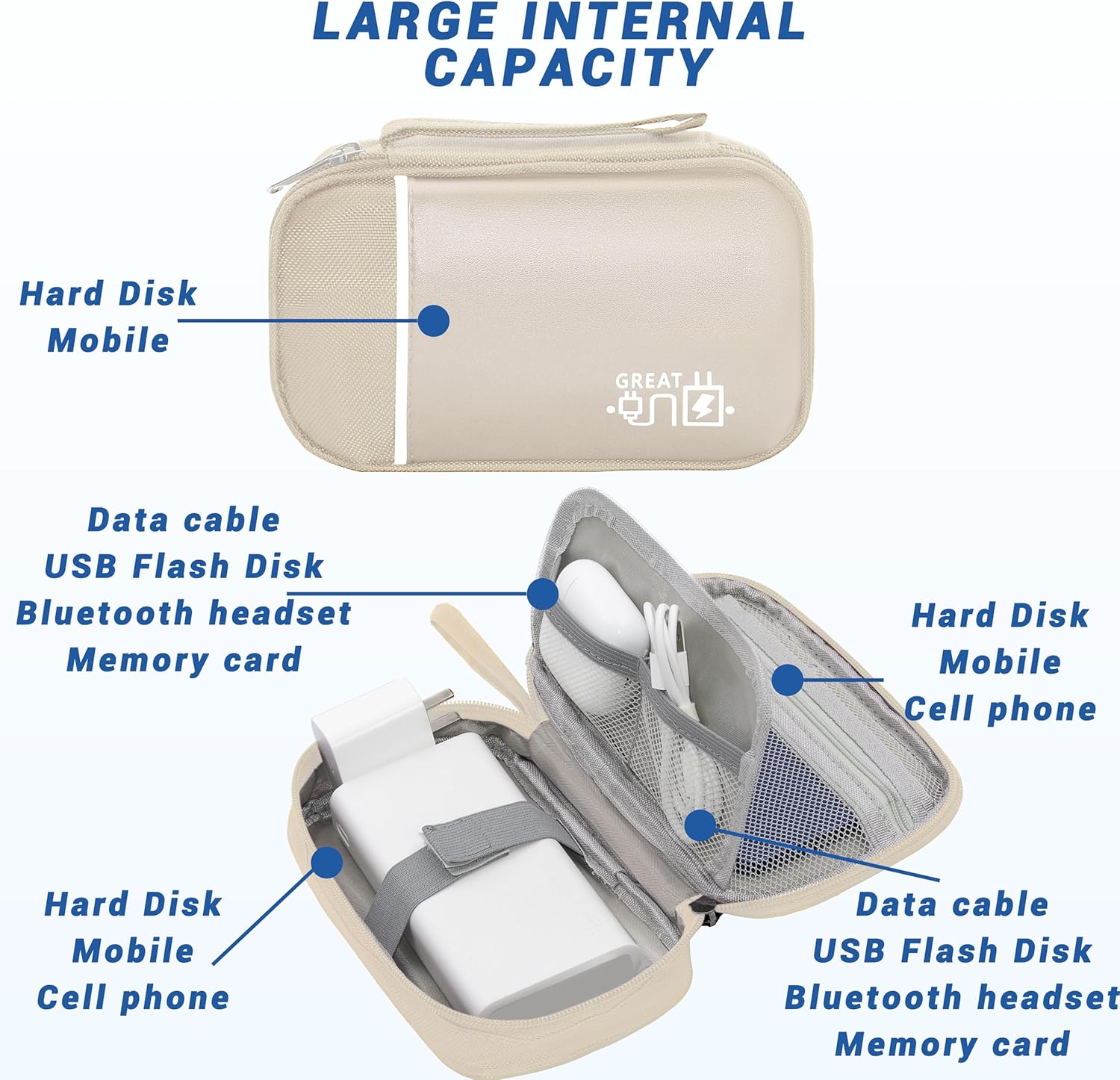 Electronics Organizer,Travel Cord Organizer Pouch, Portable Cable Organizer Bags, Waterproof Electronic Accessories Storage Case for Cables, Cords, Charger, Phone (Single Layer-Small-Beige)