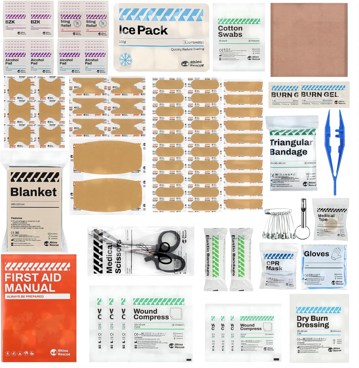 - 【RHINO RESCUE】RHINO RESCUE is a professional pre-hospital first aid & IFAK supplier. Based on the concept of fast, efficient and scientific transfer of emergency care, we continuously improve and innovate our products, providing premium first aid supplies to worldwide front-line emergency medical personnel. In the EMS specialty, we are your professional partner. Recently, RHINO RESCUE first aid supplies' packagings are being updated. All of the new packages are printed with the rhino's unique R label. Please understand that you may possibly receive old or new packaging.