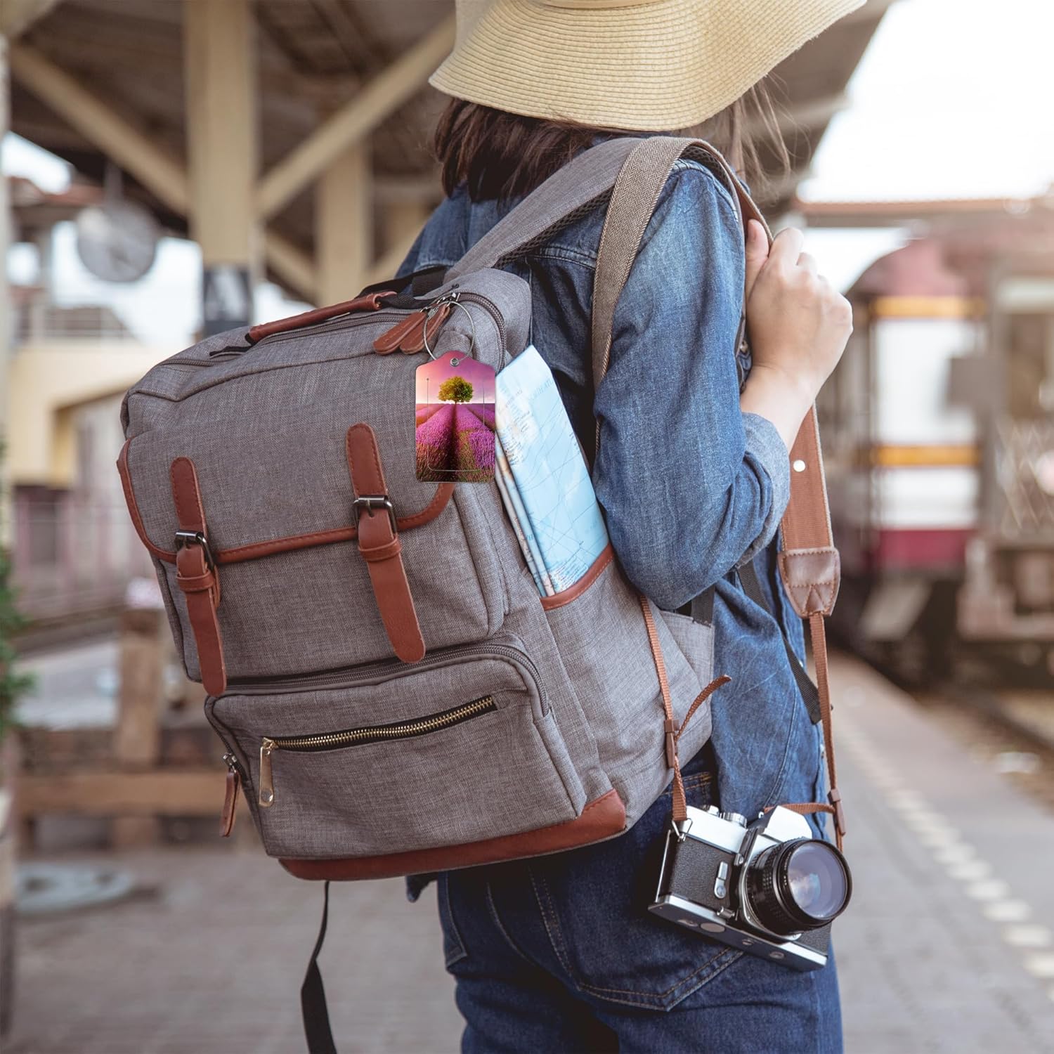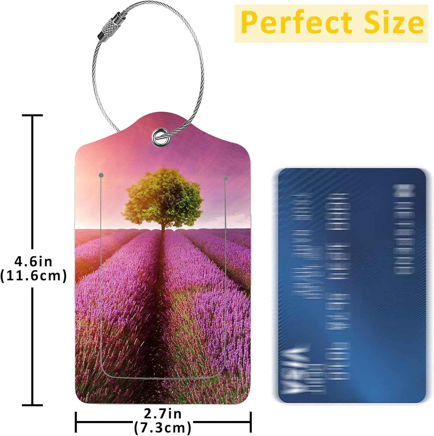 2 Pack Luggage Tags for Suitcases,Stunning Lavender Field Luggage Tag,PU Leather Id Label Luggage Tags with Stainless Steel Loop and Privacy Cover for Women Men Teens Travel